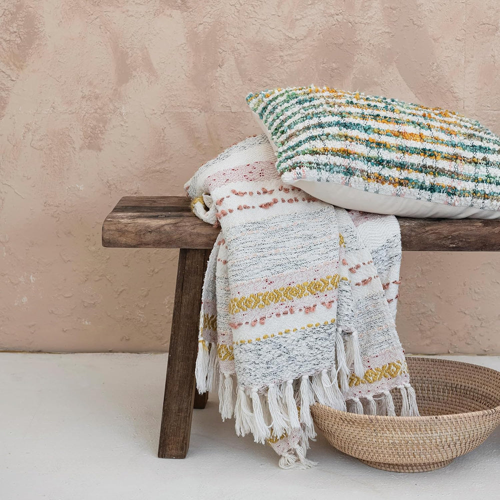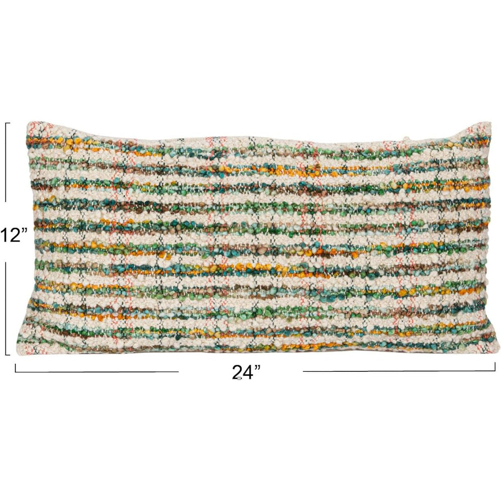 Elevate your sofa, bed, or favorite reading nook with this bouclé lumbar pillow, woven from a soft cotton-blend fabric and finished with subtle multicolor stripes. Its plush texture and warm palette bring instant comfort and modern artisan style to any space, Creative Co-Op inspired and perfect for layering.