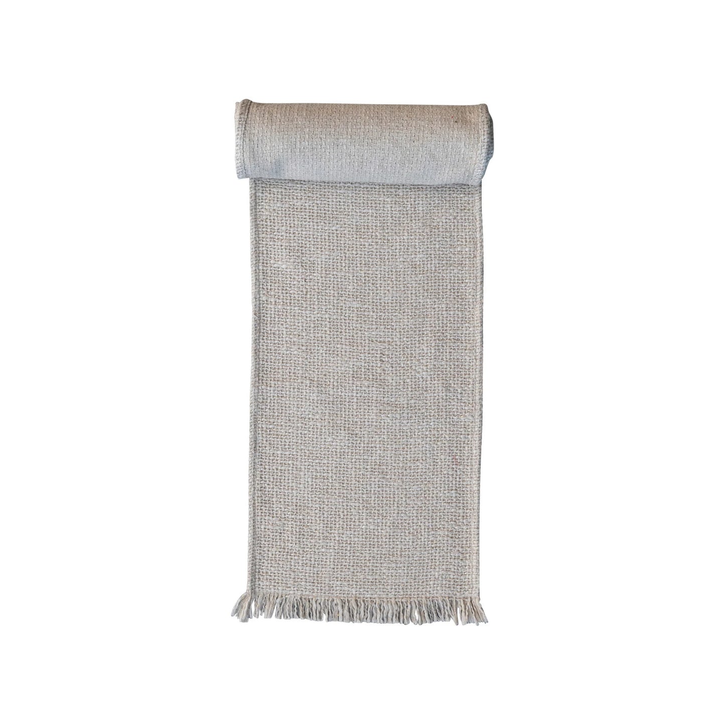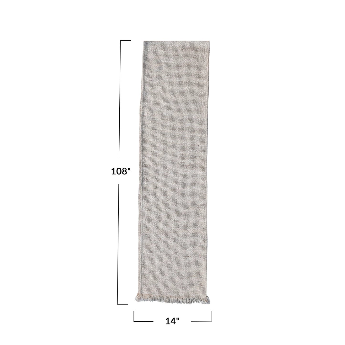 108"L x 14"W Woven Cotton Table Runner w/ Metallic Gold Thread & Fringe, Natural