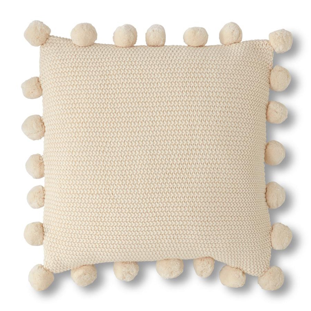 Crafted with a textured moss-stitch knit and finished with playful pompom edging, this decorative pillow adds warmth and personality to sofas, chairs, or beds. Its soft cream color makes it a versatile accent for every season and décor style, from farmhouse to modern chic.