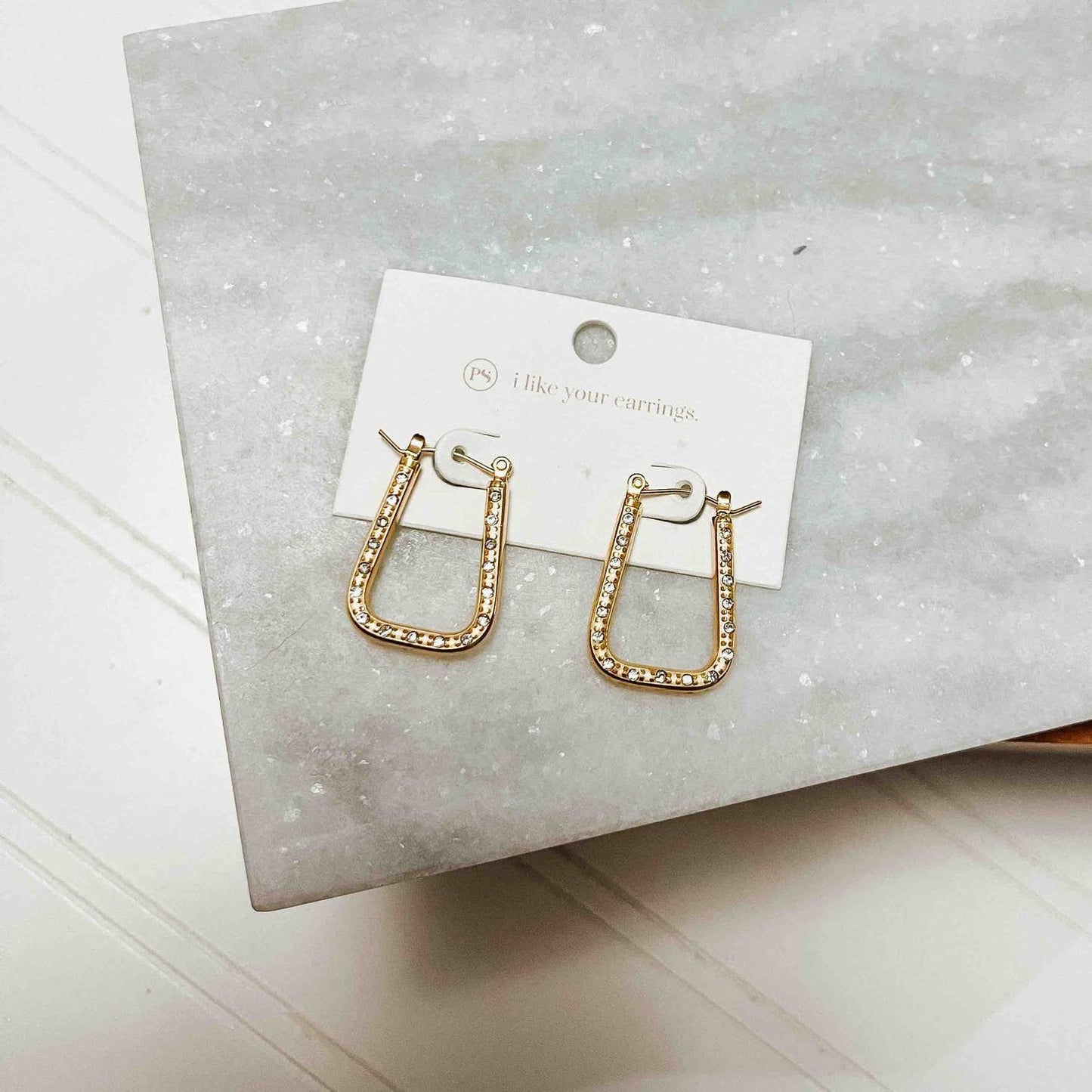 Our Diamond Square Hoop Earrings are a classic style! These Chunky 18K Gold Plated Stainless Steel Huggie U Shaped Zircon Hoop Earrings can be worn both casually and dressed up, and have beautiful detailing.