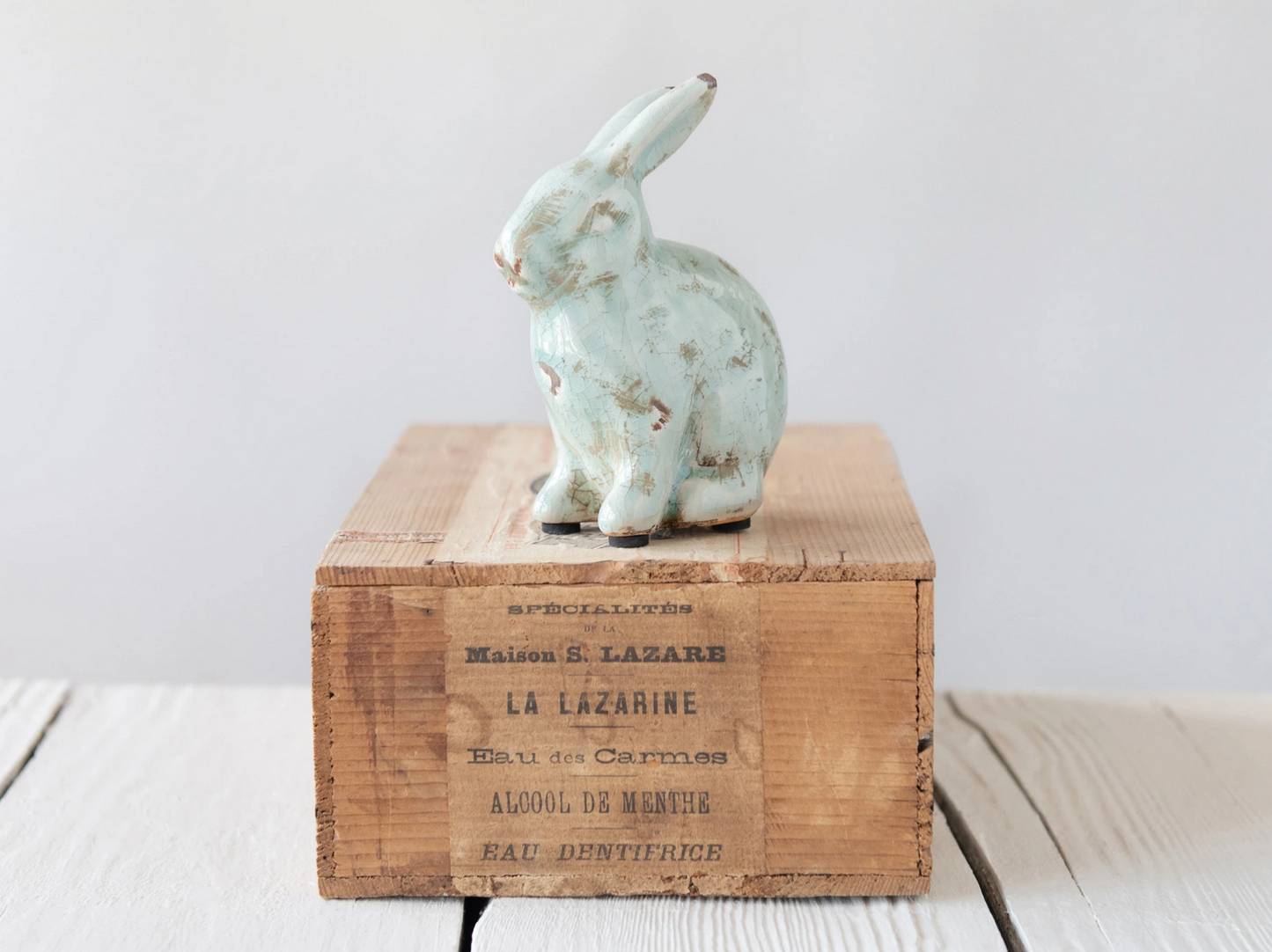 A little one will enjoy seeing this friendly bunny peaking over the top of a dresser or other object. Pair it with one or two other bunny figurines to create a happy bunny family. They will be wonderful company when needing a friend to talk to.