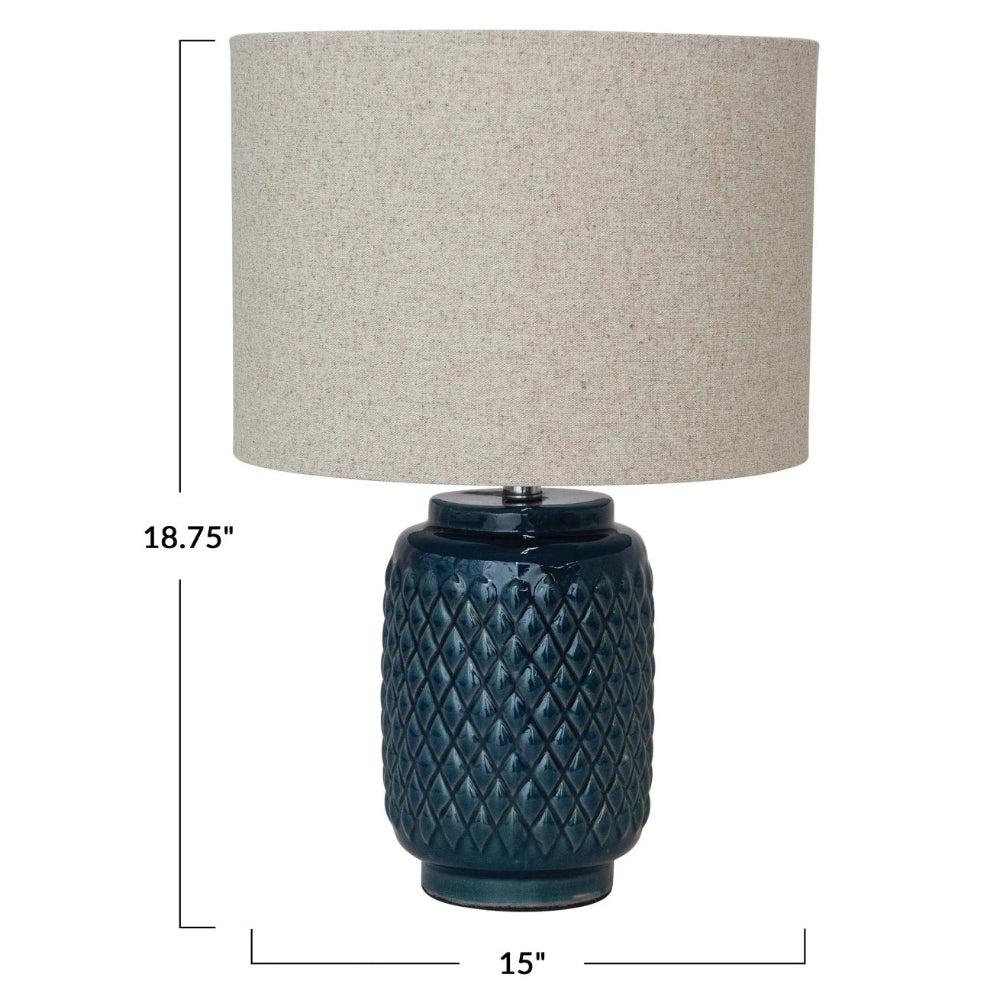 Embossed Ceramic Table Lamp with Linen Shade
