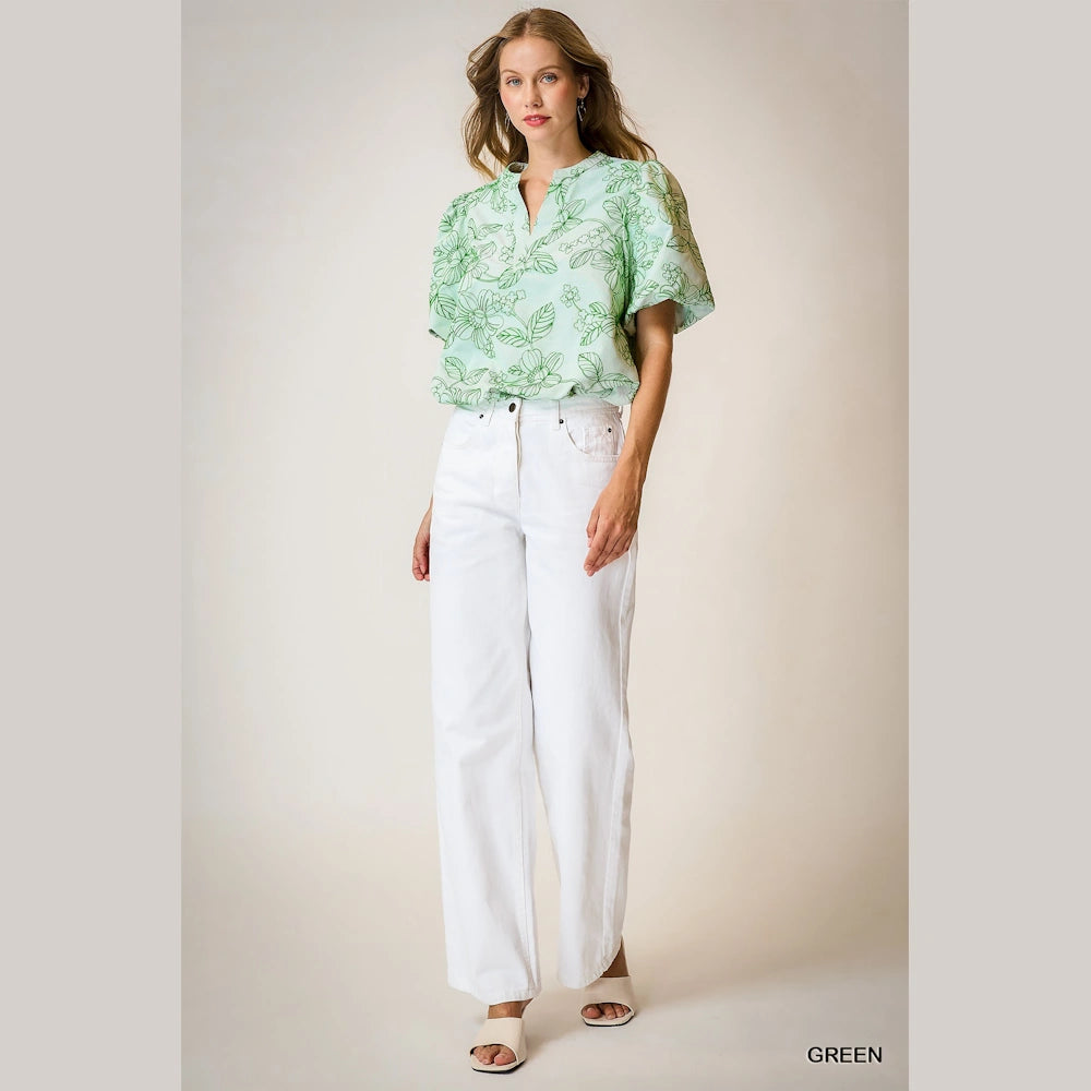 Bring soft, romantic style to your everyday looks with the Embroidered Floral Print Blouse by Umgee. Featuring delicate embroidery and a timeless floral print, this blouse blends boho charm with comfortable elegance.