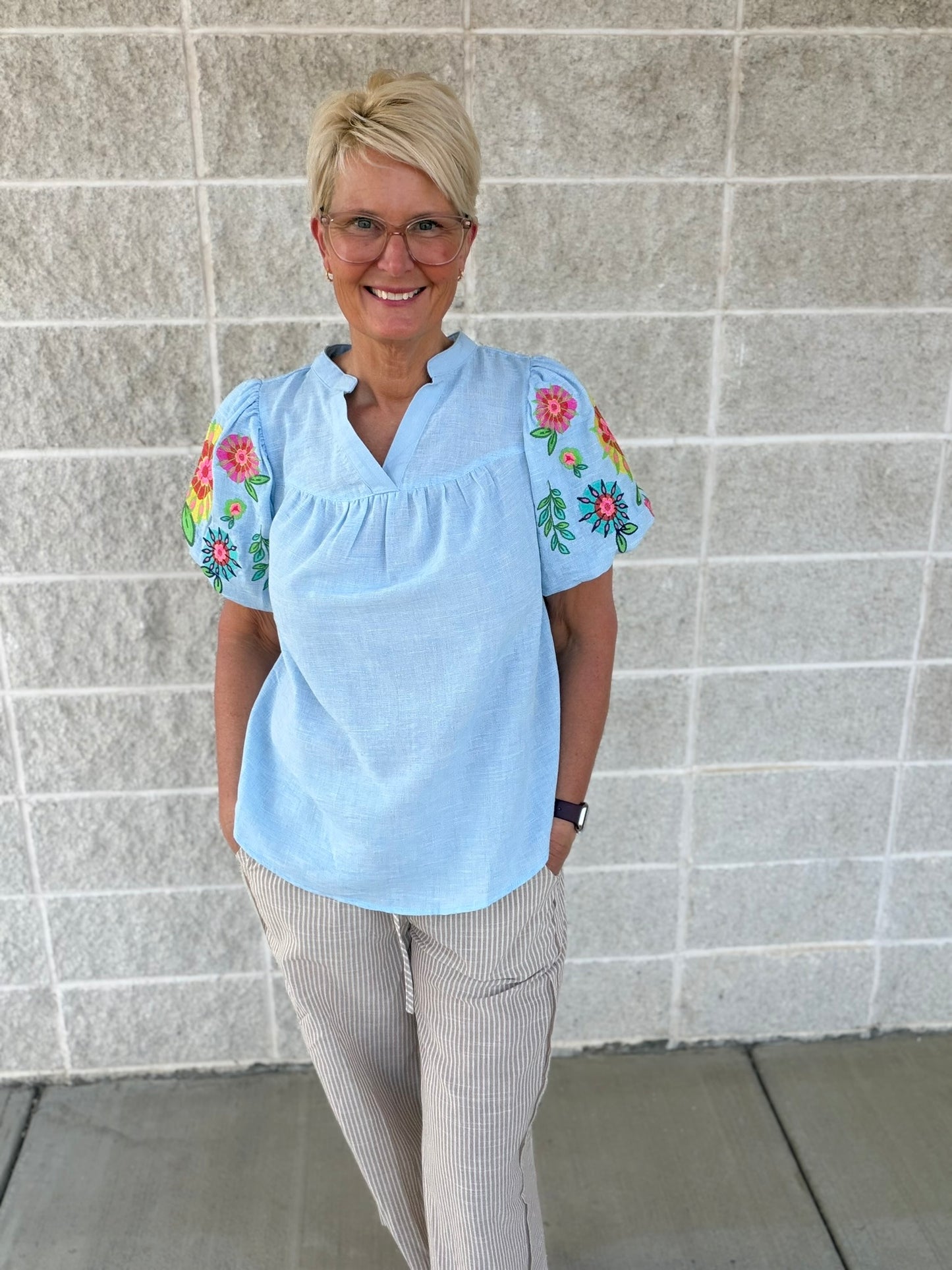 Perfect for dressing up denim or pairing with skirts and trousers. Shop the Embroidered Puff Sleeve Top today at MISS DAISY'S Home & Decor and elevate your everyday look with effortless elegance.