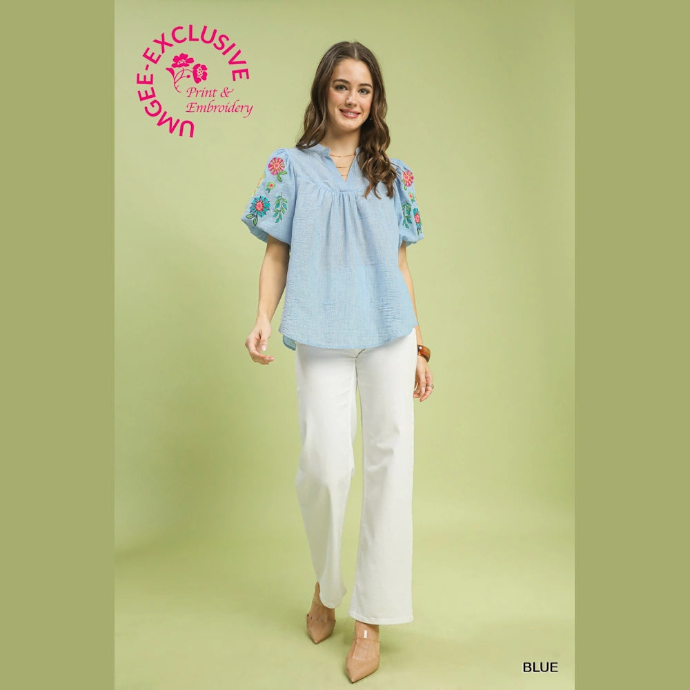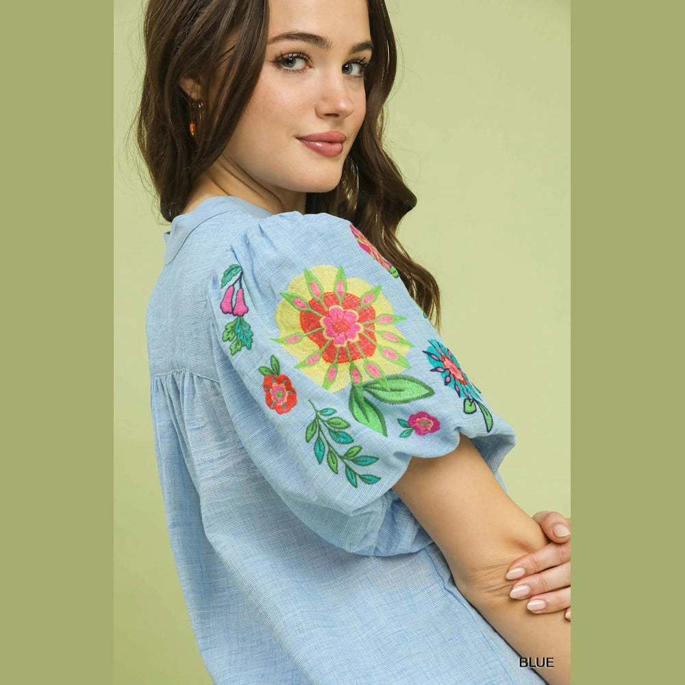 Add a touch of artisan charm to your wardrobe with the Embroidered Puff Sleeve Top by Umgee. Featuring delicate embroidery and a flattering silhouette, this top blends boho elegance with everyday comfort.