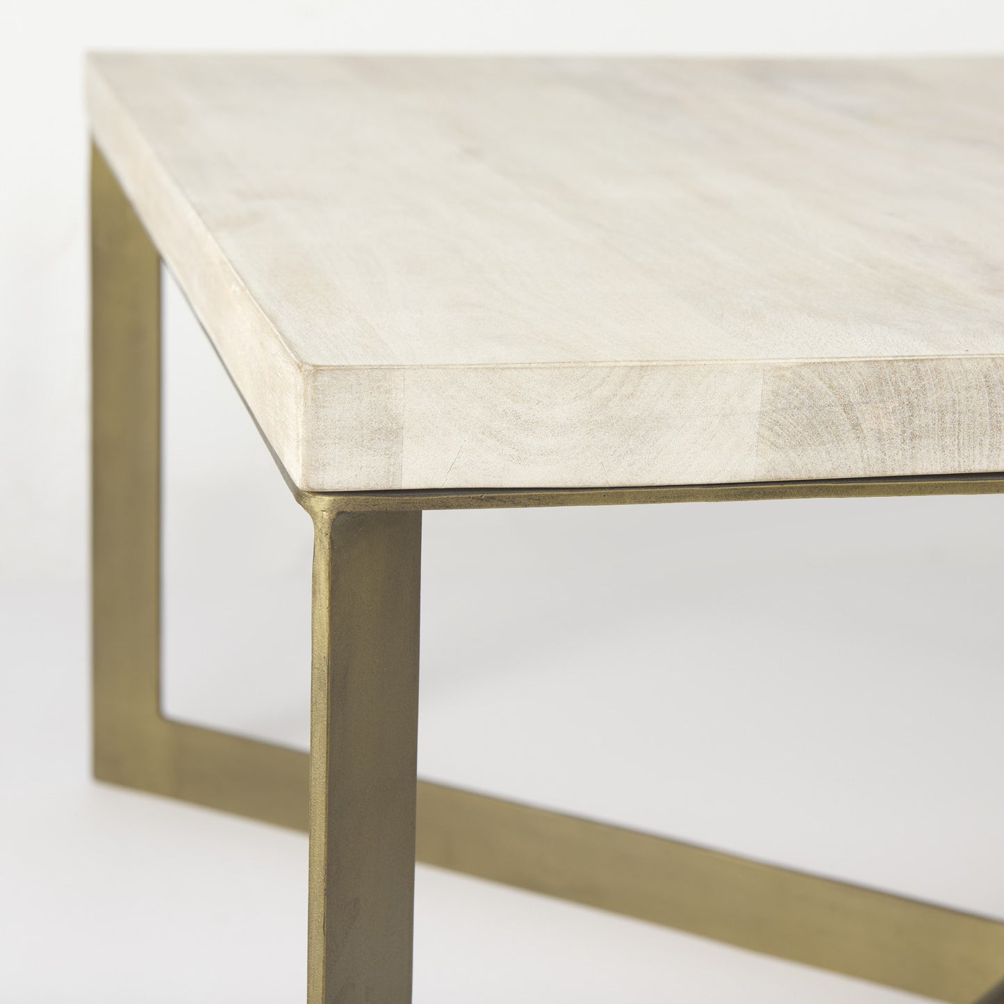 Faye Barely Gray Finished Wood W/Gold Metal Base Square Coffee Table