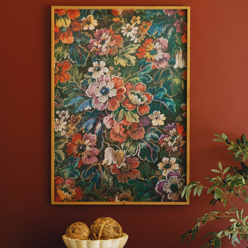 Wallpaper has a new twist. Get this wood-framed printed paper in floral for your bestie. These bright florals look great against a dark or light background.
