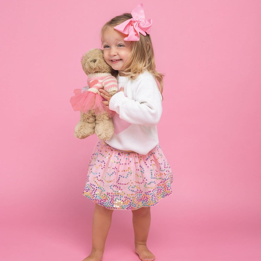 Make every cuddle extra special with Girl Sweater Bear Plush Pals, a heartwarming Mud Pie favorite designed for comfort and charm. Dressed in an adorable sweater, this soft and huggable bear brings cozy sweetness to playtime, nap time, and bedtime.