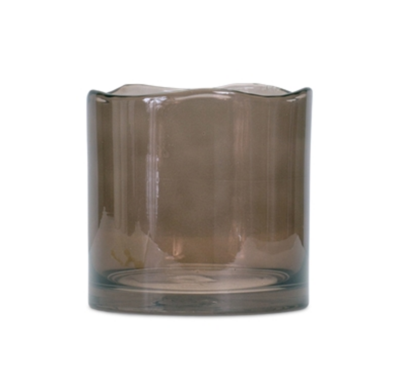 Round glass vase with a detailed top.