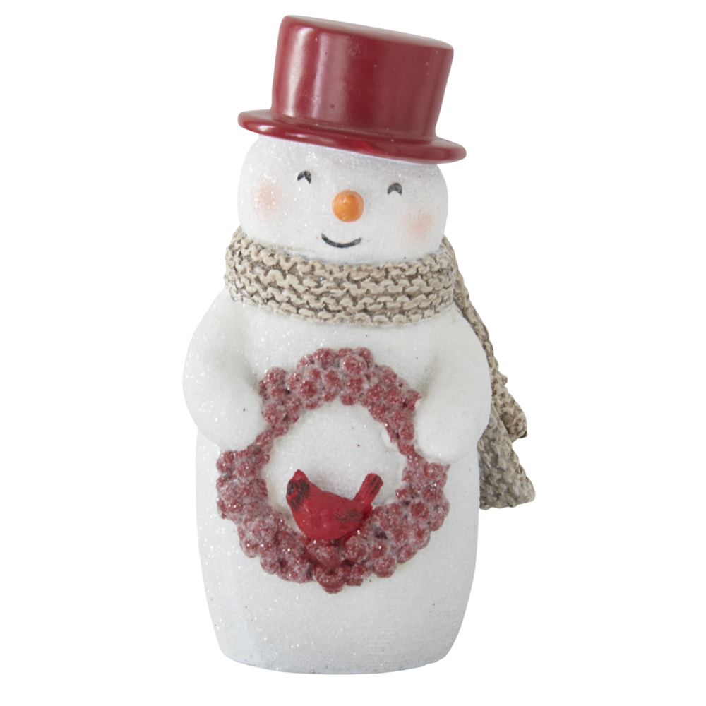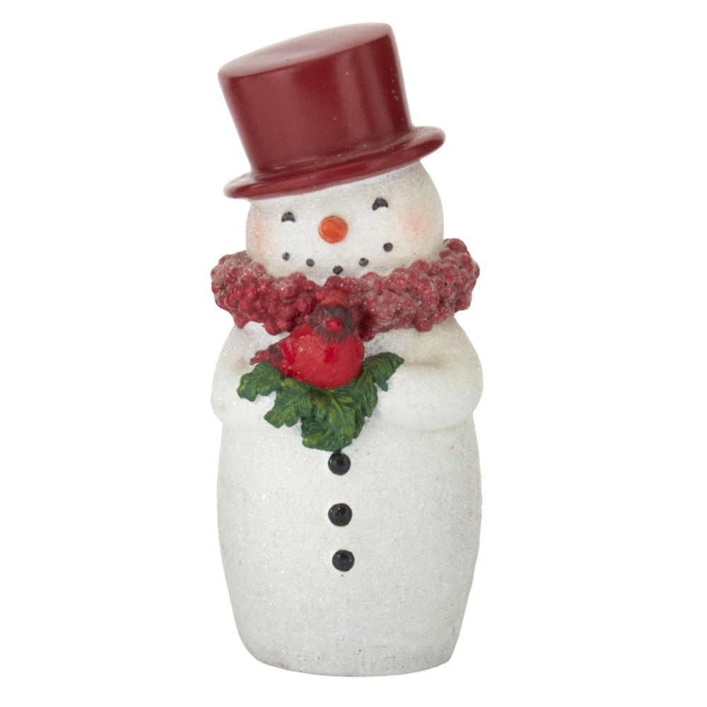 Each charming snowman features glittered bodies and bright red top hats, creating a cheerful and whimsical addition to mantels, tables, or shelves.