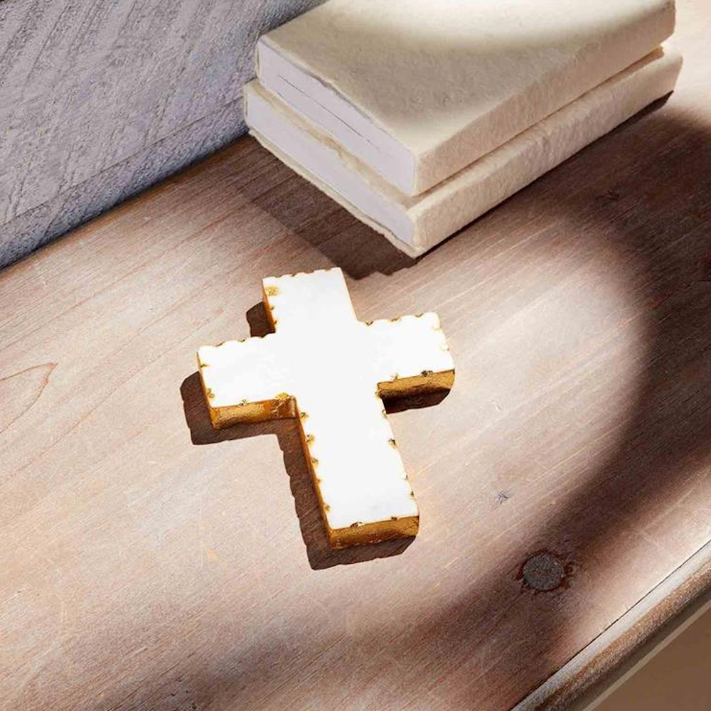 This gold edge marble cross is the perfect seasonless piece to display in your home.