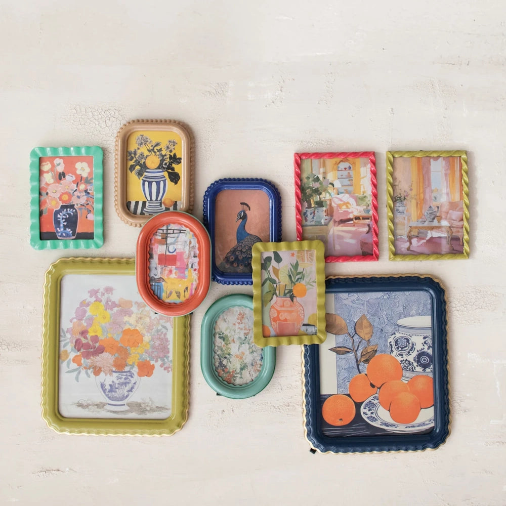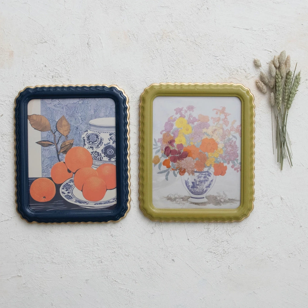 Give your favorite memories a beautifully elevated home with this Scalloped Photo Frame, finished with a delicate gold edge and available in two elegant colors. Inspired by Creative Co-Op’s soft, nostalgic design approach, this frame brings subtle character and a handcrafted feel to any shelf, nightstand, or wall display.