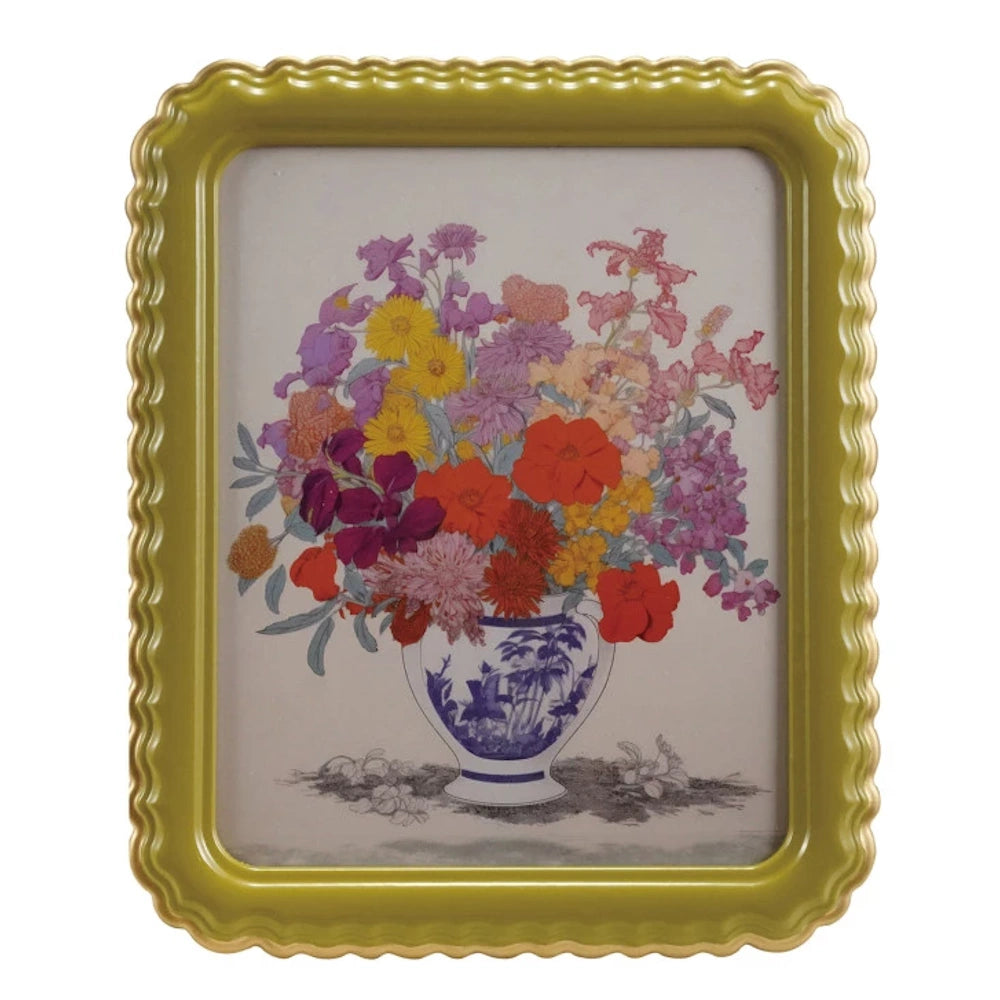 The scalloped border adds playful charm, while the gold-finished trim enhances your photo with a warm, glowing highlight. Sized to hold an 8" x 10" photo, it’s perfect for family portraits, travel snapshots, wedding images, and meaningful everyday moments.