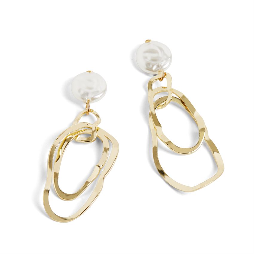 Catch the light with these charming Gold Pearl Waves Earrings! Crafted from mixed alloy with lustrous pearl accents, these petite beauties measure 2.75" and strike the perfect balance between statement-making and everyday-wearable. The undulating wave design adds movement and dimension to any look, while the warm gold tone complements virtually every skin tone. Whether you're dressing up for a special occasion or elevating your casual style, these earrings bring a touch of coastal-inspired elegance to your jewelry collection.