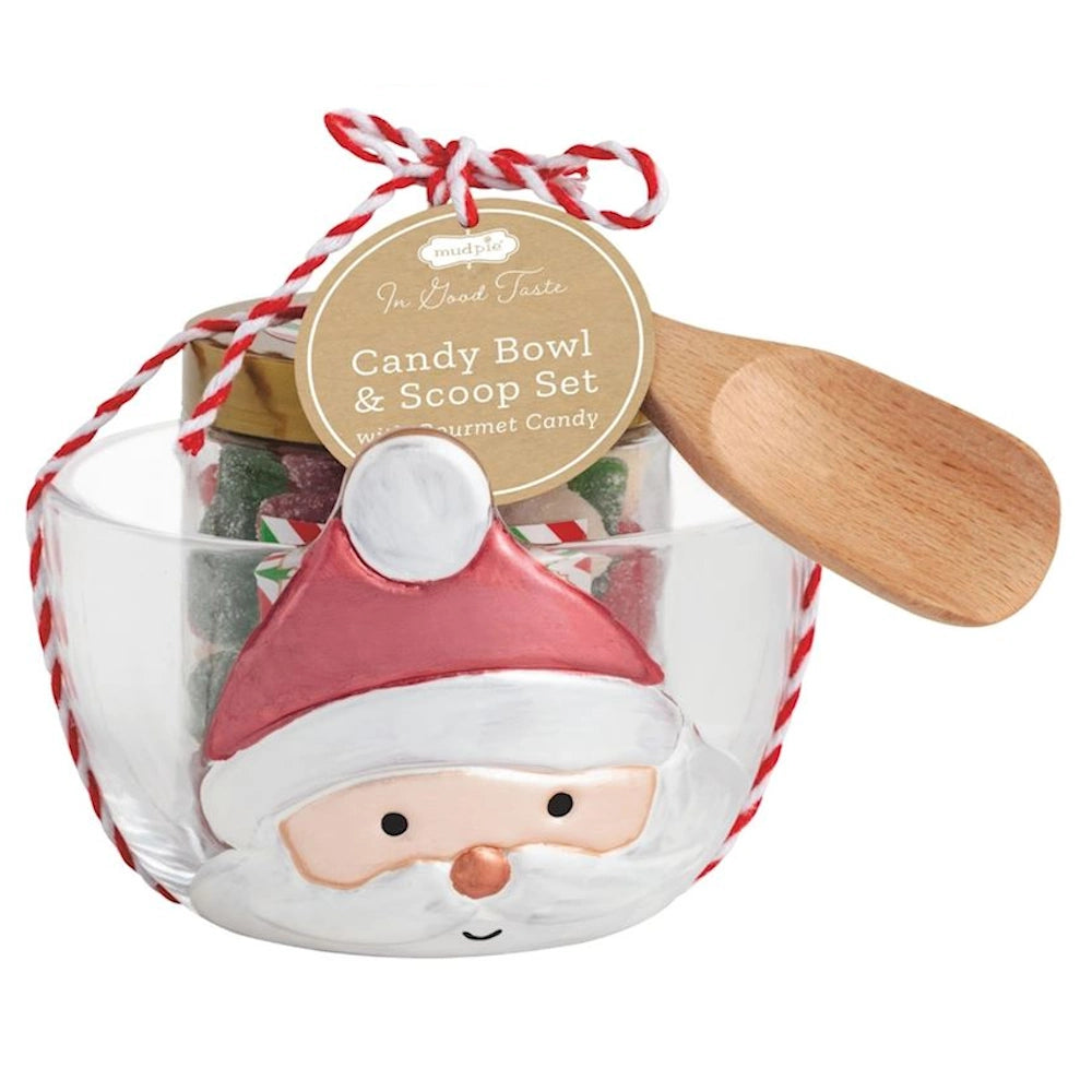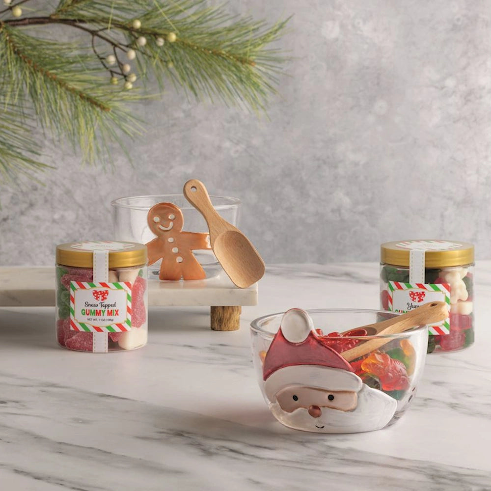 3-piece set: fused glass bowl, wood scoop, gummy candies