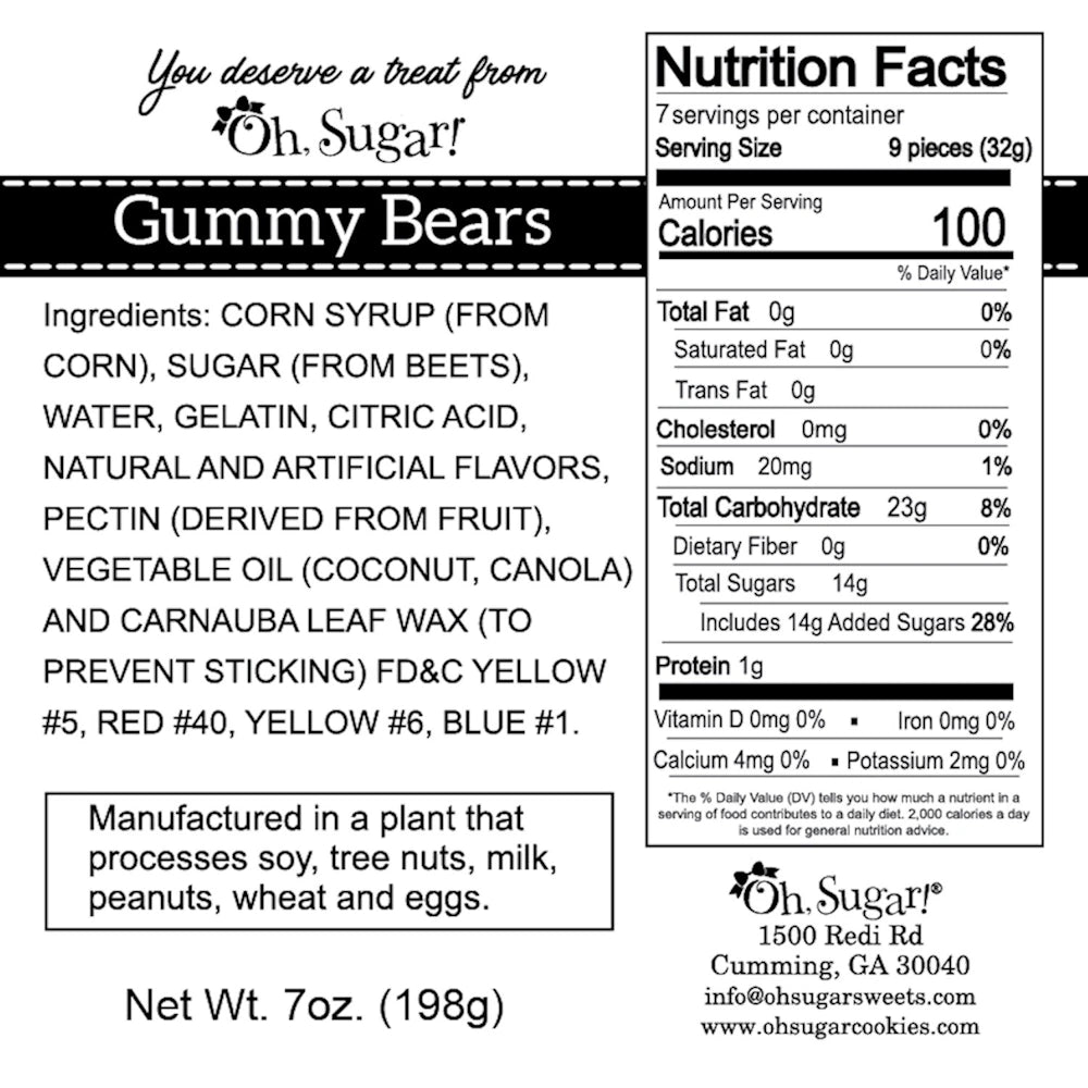 Includes engraved wood scoop and jar of Oh Sugar gummy candies