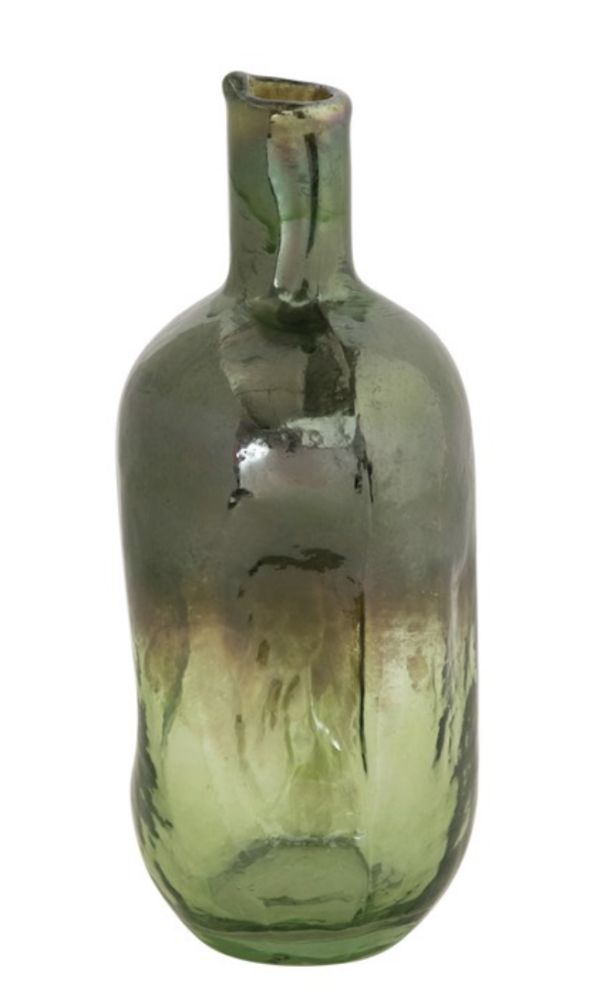 Hand-Blown Recycled Glass Organic Shaped Bottle Vase, Green Iridescent Opal Finish