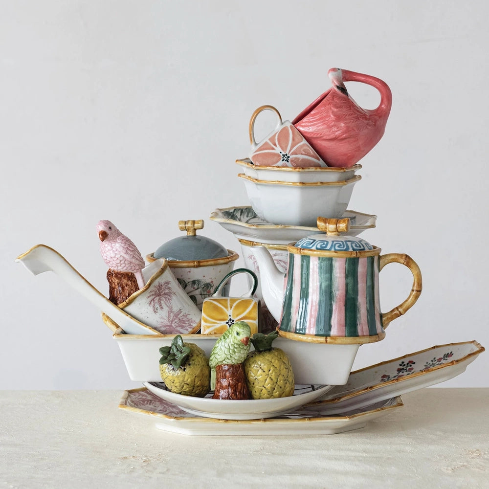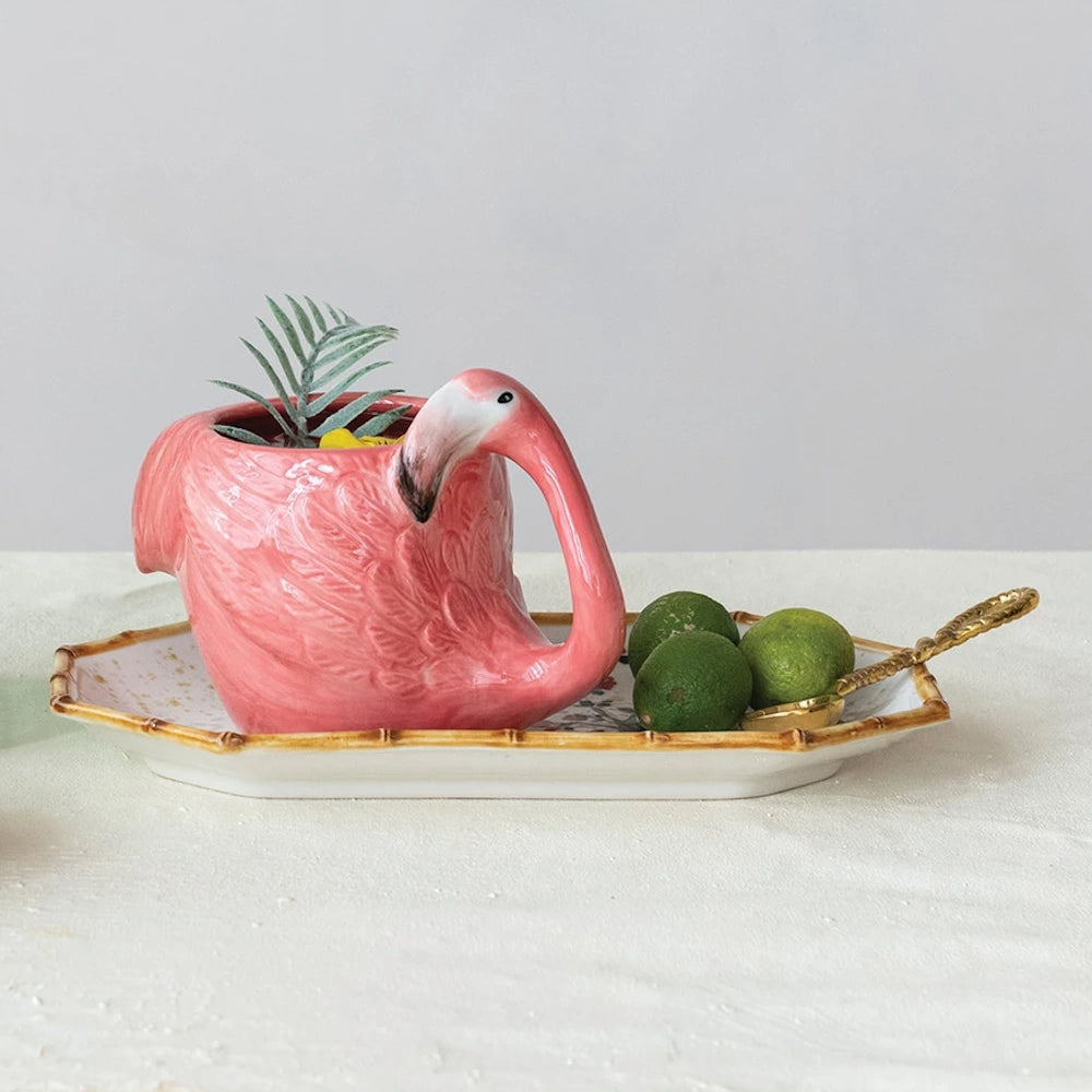Hand-Painted Stoneware Flamingo Shaped Mug
