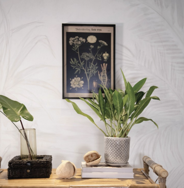 Hand-Stamped Stoneware Pot & Saucer w/ Embossed Pattern, Black & Cream Color