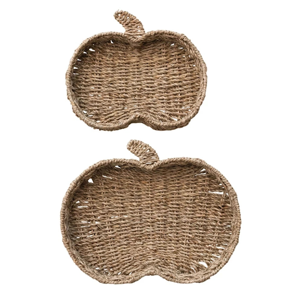 Crafted from durable seagrass, these trays are designed in the shape of pumpkins, making them the perfect accent for fall decorating, Thanksgiving gatherings, or everyday rustic style.