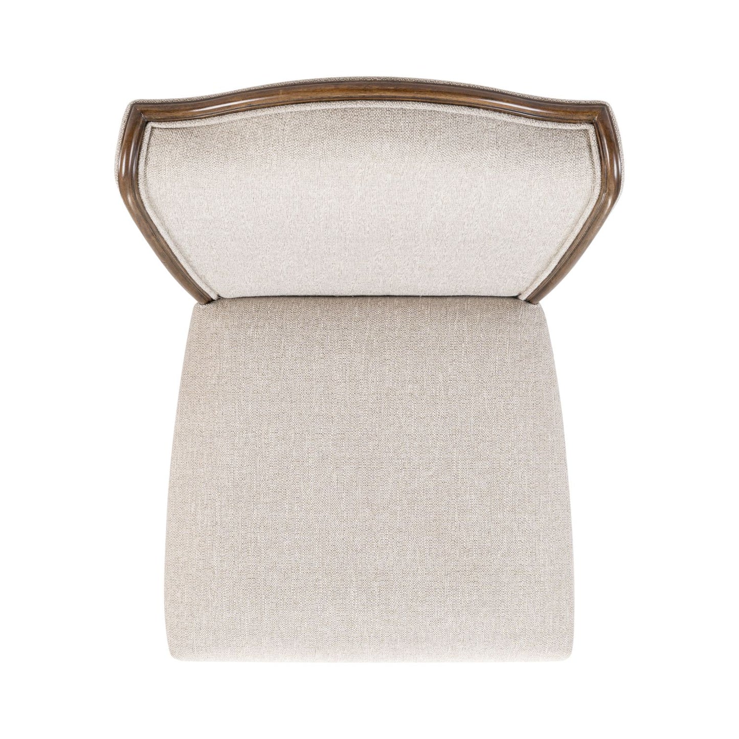 The Harrison Heights Upholstered Side Chair blends comfort and elegance in a timeless silhouette. Crafted of Rubberwood solids in a rich Sienna finish, this chair features a gracefully arched back wrapped in soft Frosted Beige upholstery. Subtle shelter-style side panels gently cradle the body, offering both support and a touch of sophistication. The clean wood frame accents enhance the design without overpowering it, while classic saber legs add a refined, sculptural element. Nylon chair glides beneath each leg protect your floors, making this chair as practical as it is polished—a perfect pairing for a warm, welcoming dining space.