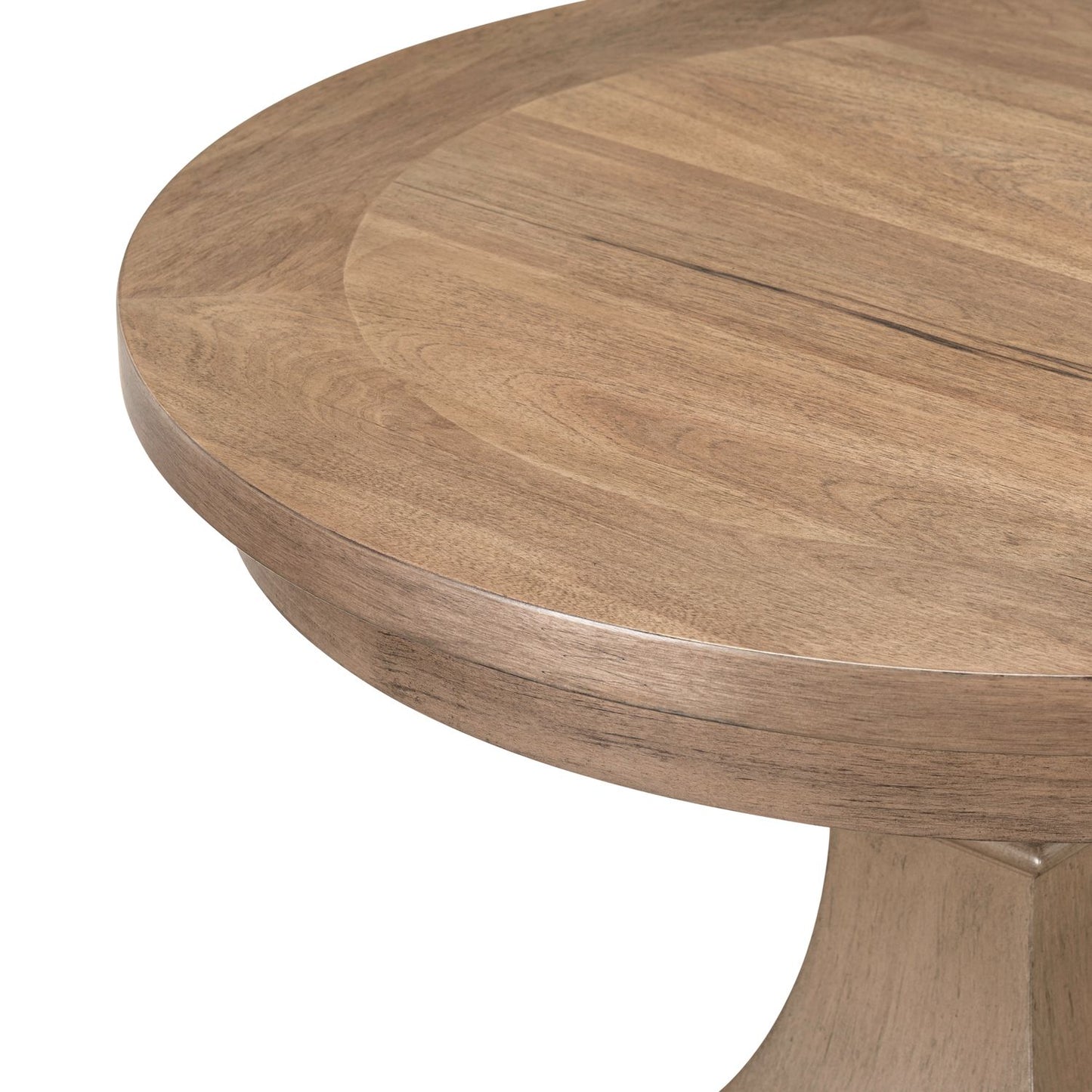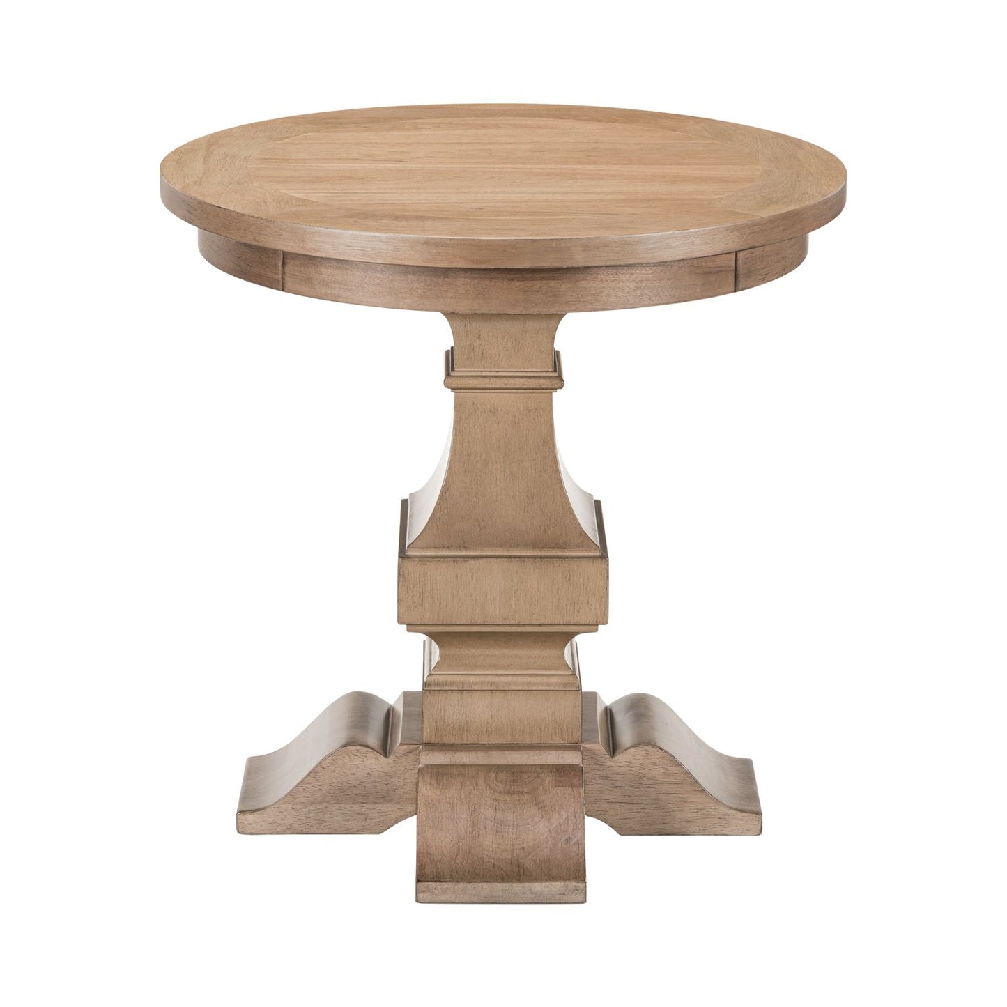 Beauty and elegance come together in the Haven Hills Round End Table, a timeless accent piece crafted of Rubberwood solids with Rustic Birch veneers in a warm Camel Beige finish. The classic round top is perfectly complemented by a traditional column-style pedestal, creating a sense of graceful balance. Gently curved, shaped bracket feet add a touch of sophistication and stability to the design. Whether placed beside a sofa or as a standalone piece, the Haven Hills Round End Table brings refined charm and warmth to any room.