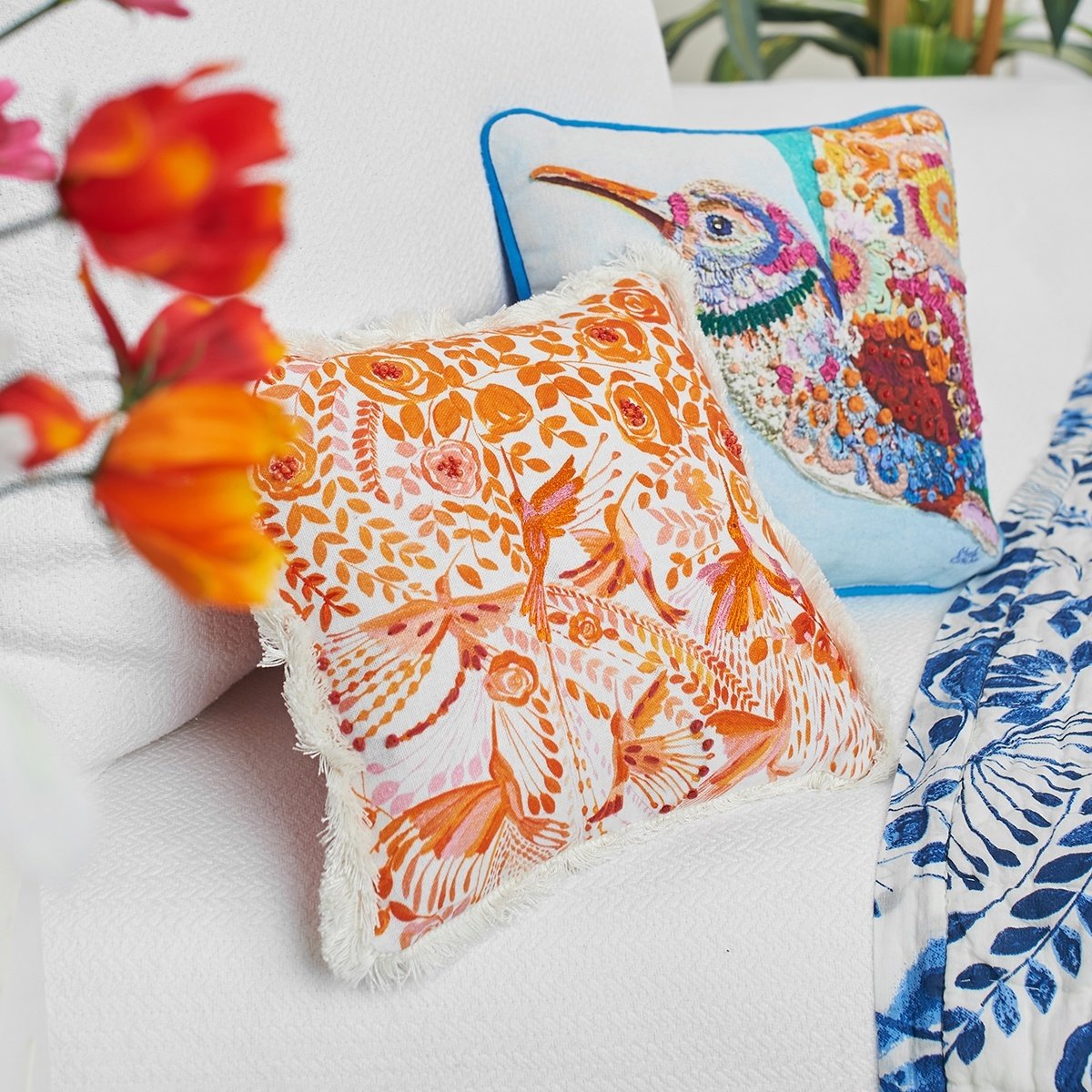 Hummingbird Floral Pillow