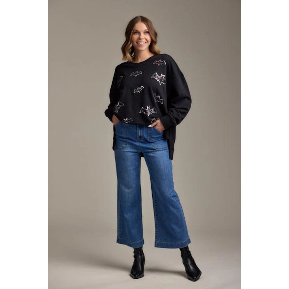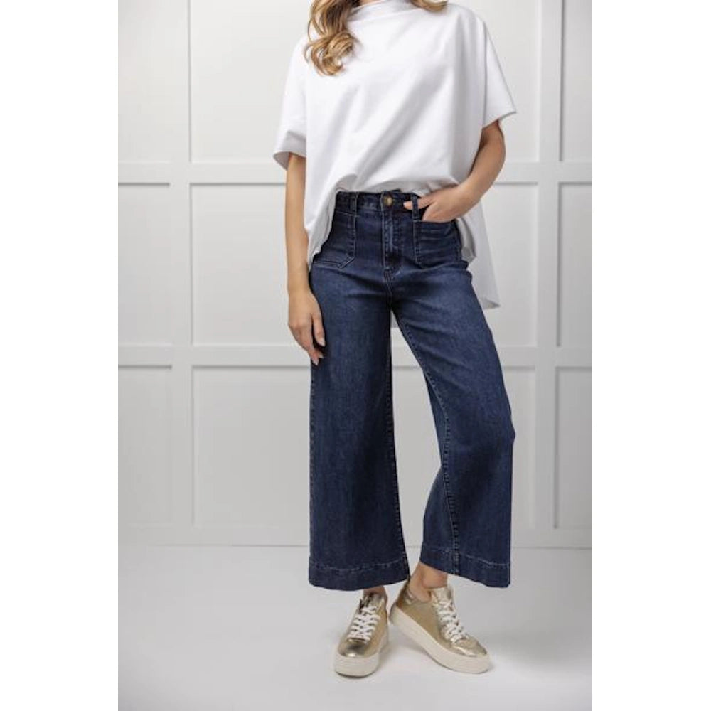 The Jake Wide Leg Pant offers a stylish and comfortable fit with its stretch denim fabric, perfect for any casual or semi-formal occasion.