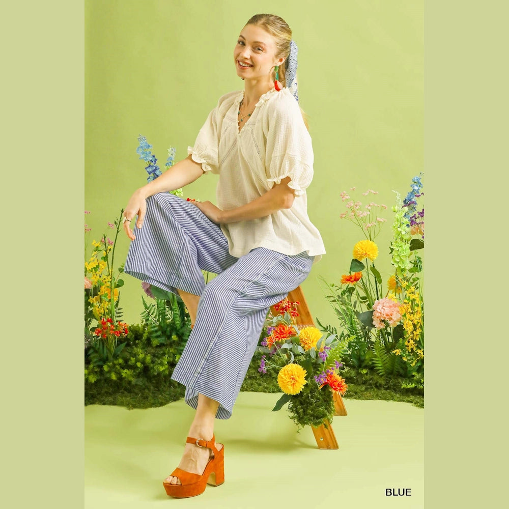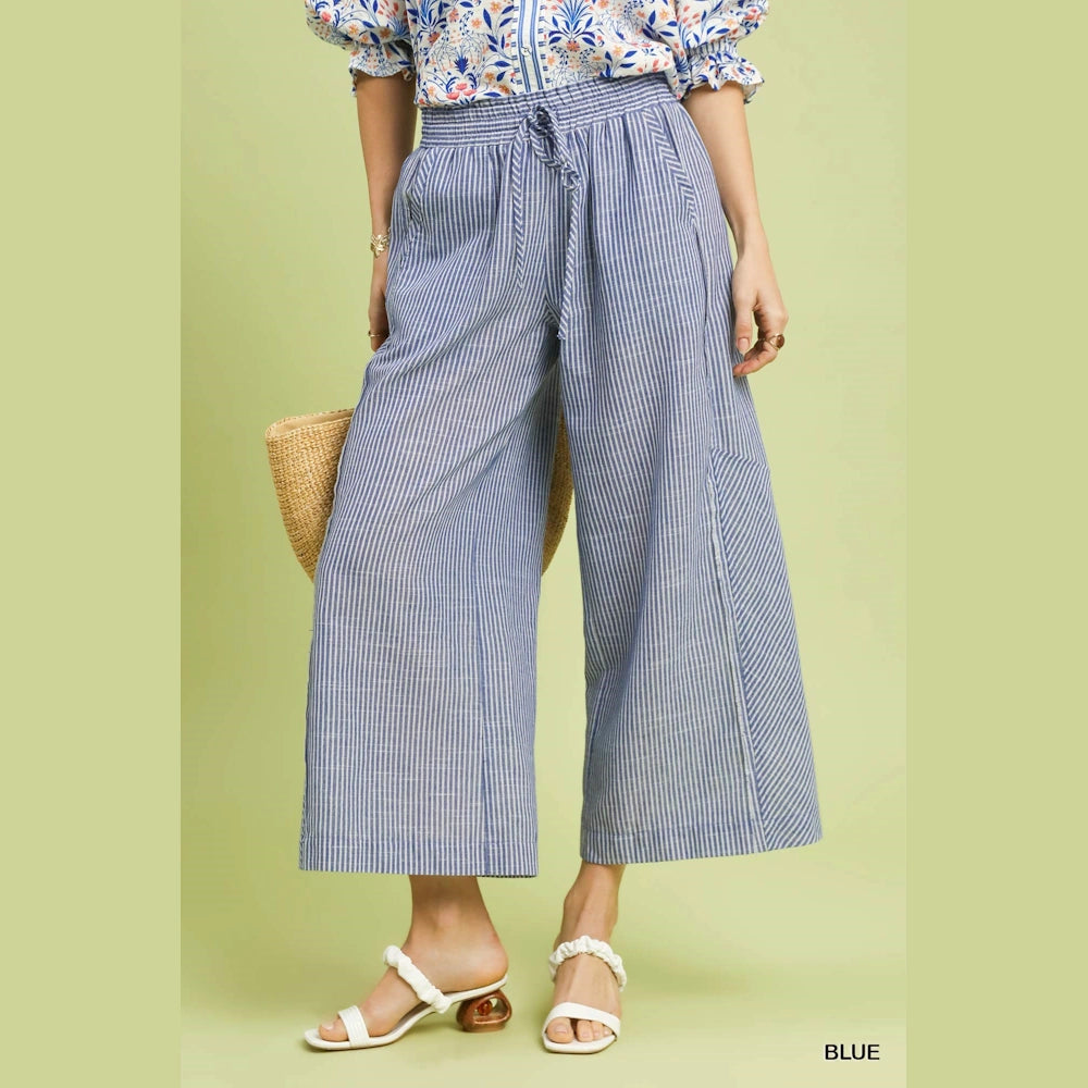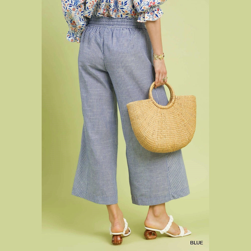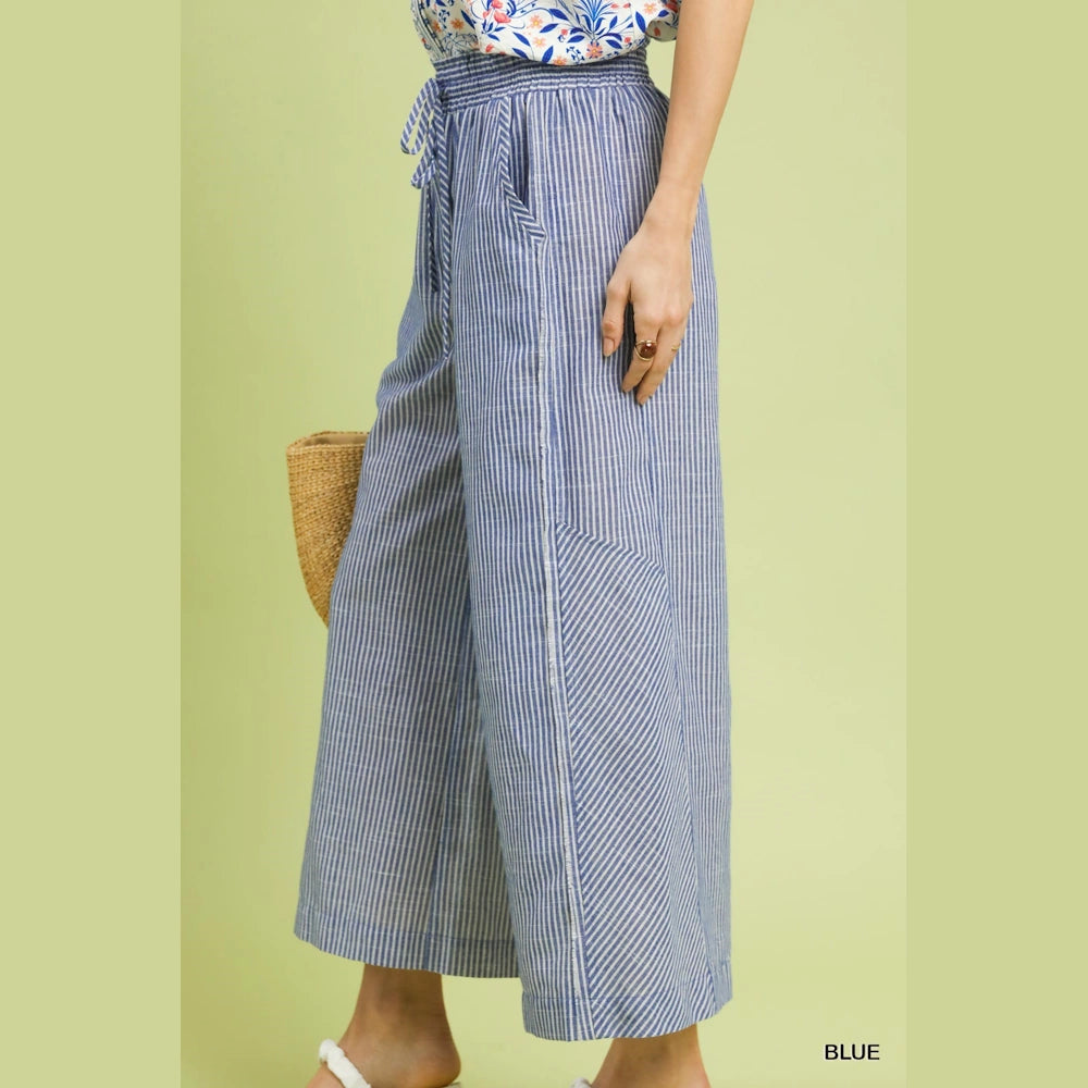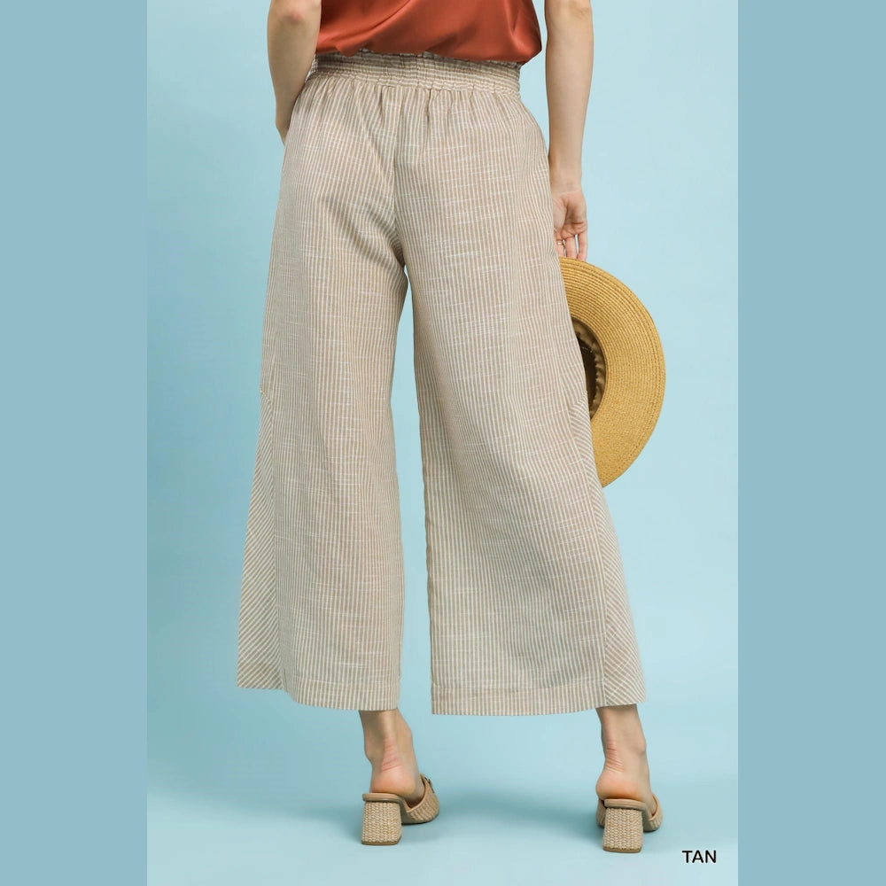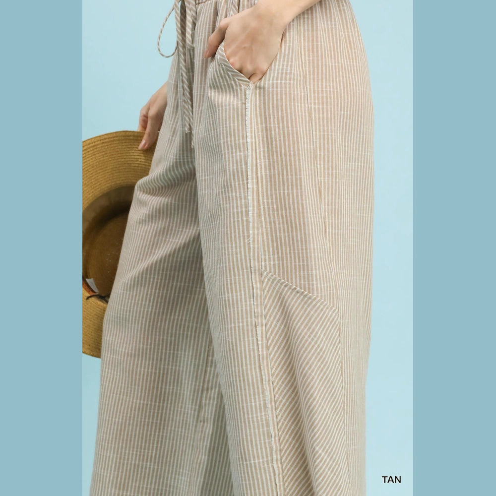 Linen Blend Striped Wide Leg Pants