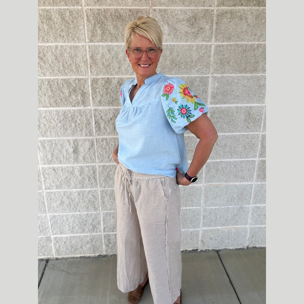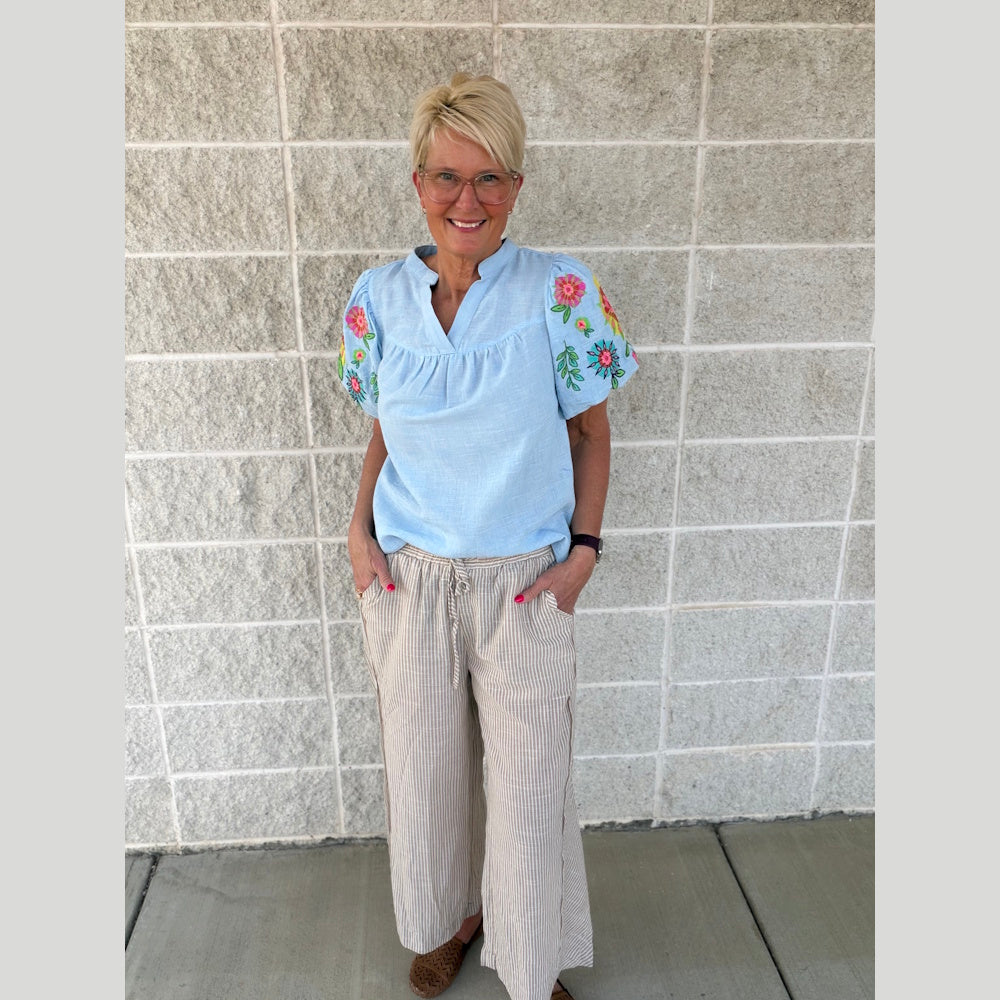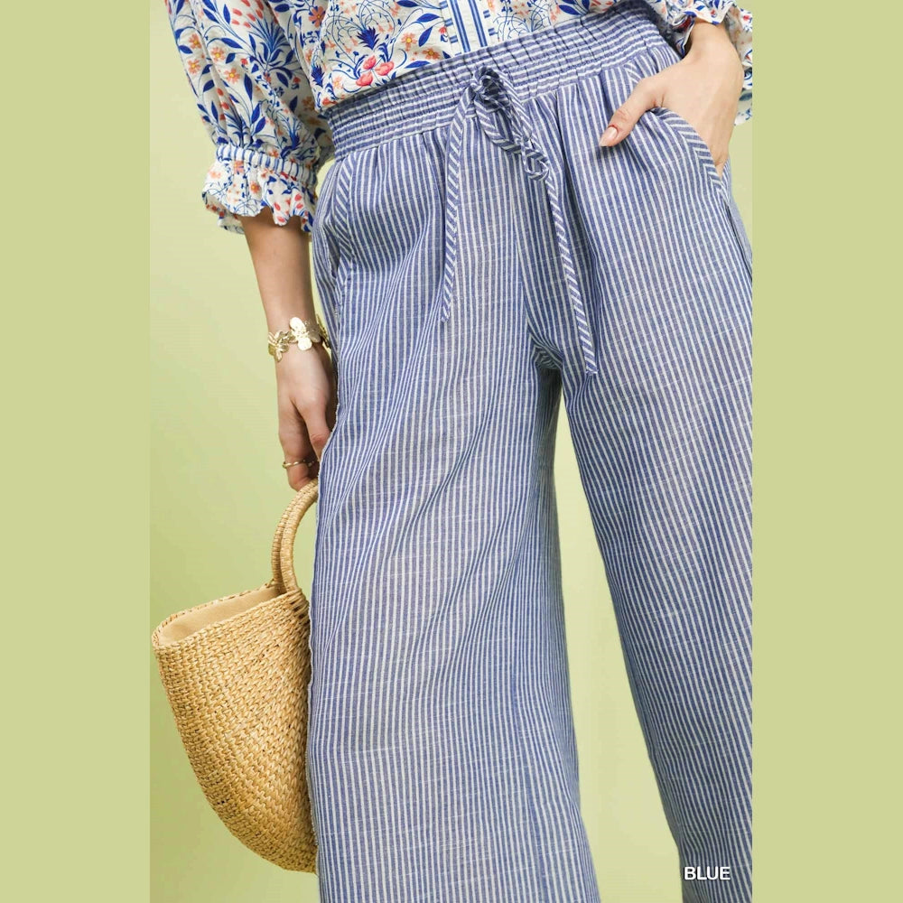 Perfect for casual outings, vacations, or weekend wear, these pants style effortlessly with tanks, tees, or blouses. Shop the Linen Blend Striped Wide Leg Pants today at MISS DAISY'S Home & Decor and embrace comfort with standout style.
