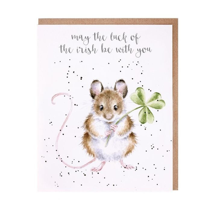 Perfect for St Patrick's Day this design features an adorable little mouse and reads 'May the luck of the Irish be with you' The card is 6.77 x 4.84 inches and is printed on high quality, textured board. It is supplied wrapped with a recycled envelope.