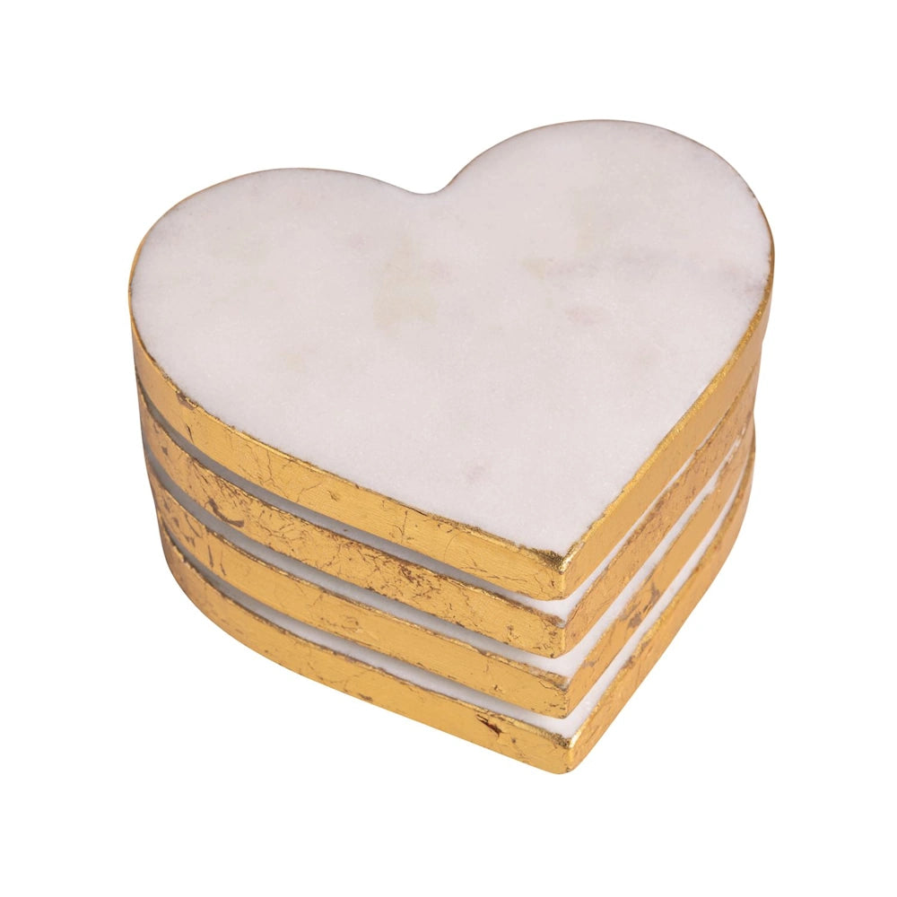 Elevate your home decor with this exquisite set of four Marble Heart Coasters, each meticulously crafted to add a touch of elegance to any setting. These coasters feature a stunning marble design, beautifully complemented by luxurious gold foil edges that catch the light and add a sophisticated flair.