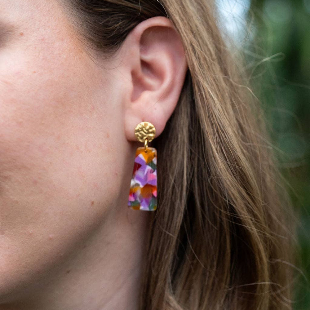 Mia Mini Earrings feature a fun pop of color with gold stud accents. These dainty earrings make the perfect finishing touch to any outfit, while still being small and delicate enough to wear every day.