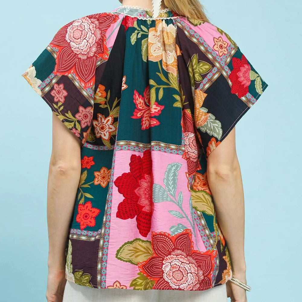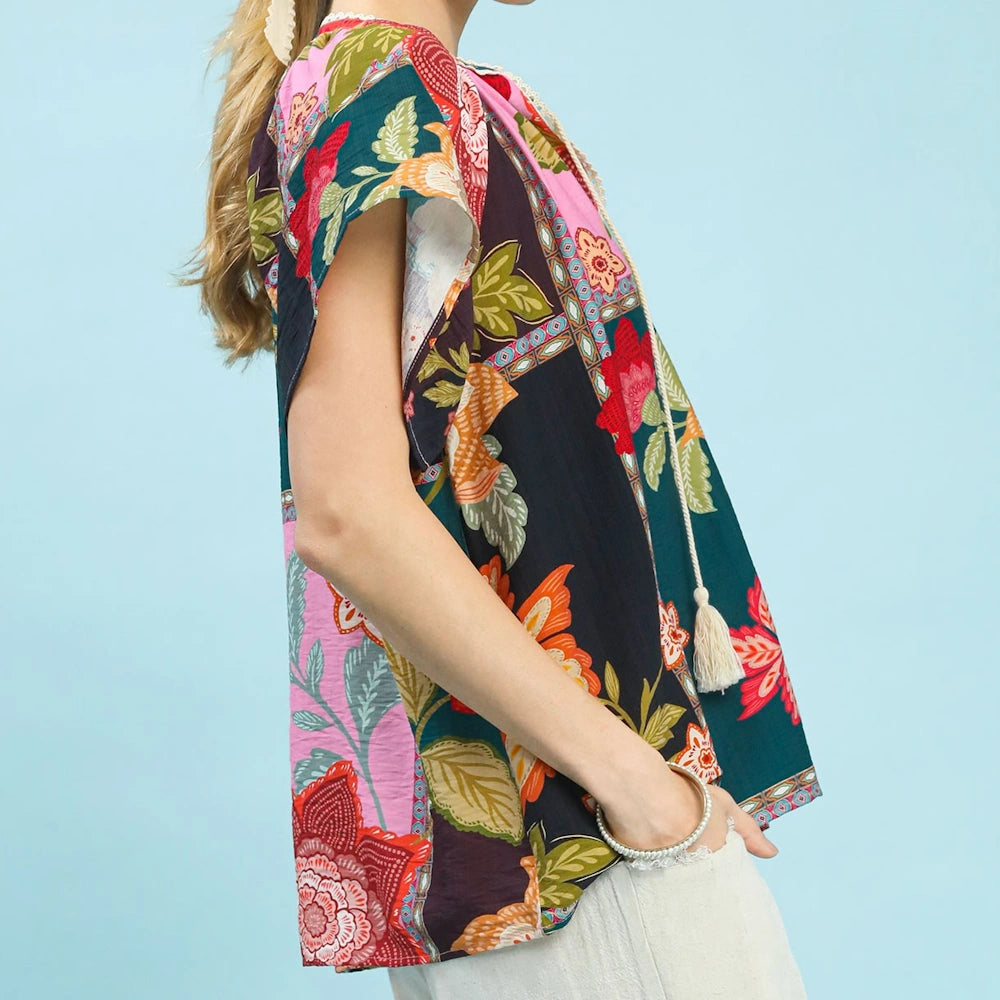 Mix Floral Patchwork Tassel Tie Top