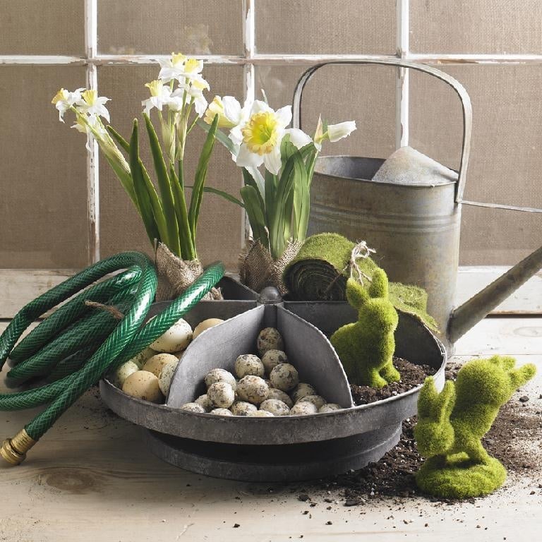Moss Bunny Standing on Front Feet Add a touch of whimsy to your spring décor with this playful moss bunny! With its vibrant green texture and fun upside-down pose, this bunny is perfect for bringing a fresh, lively feel to your home.