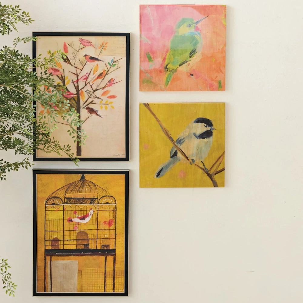 Featuring hand-painted birds perched on intricate trees or delicate cages, each piece adds color, texture, and storybook charm to your home.