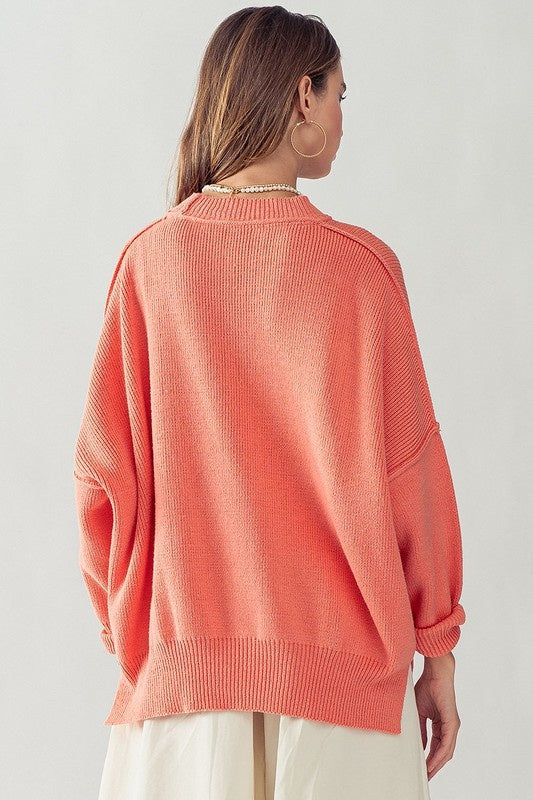 Oversized Side Slit Crew Neck Cozy Sweater