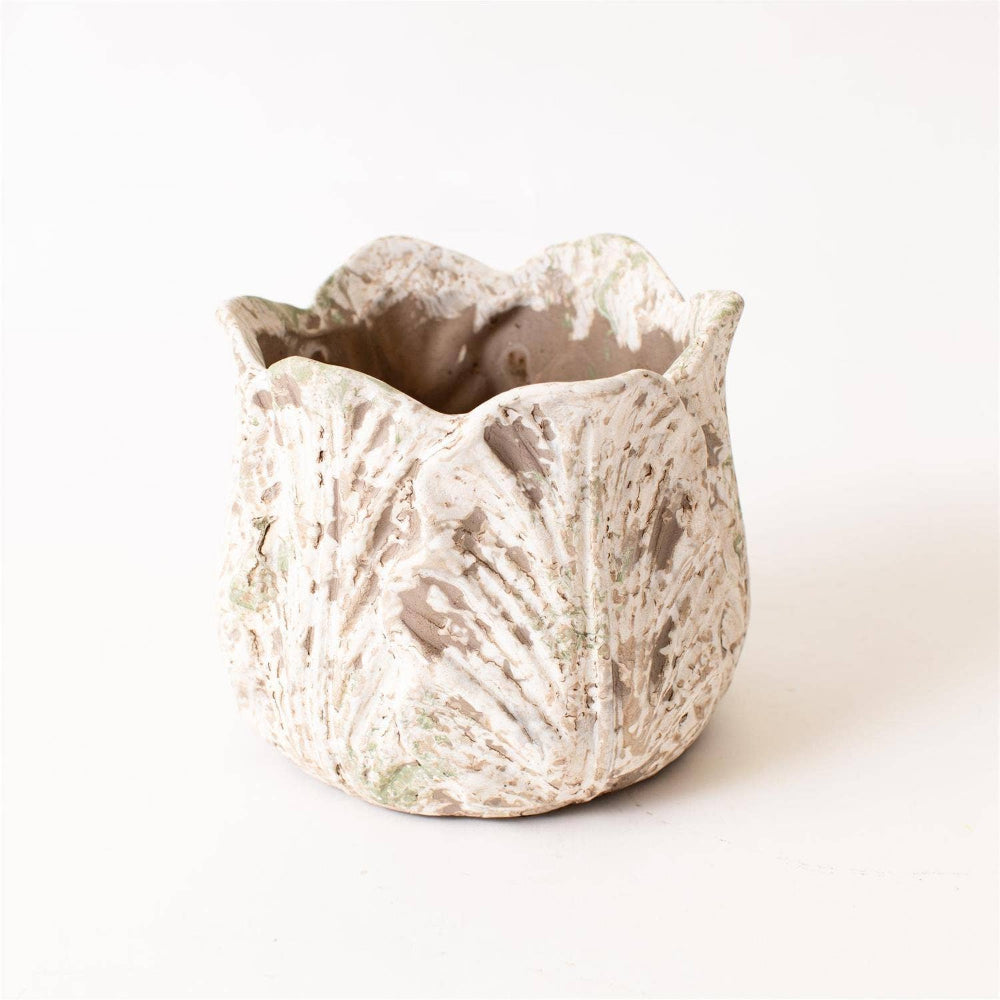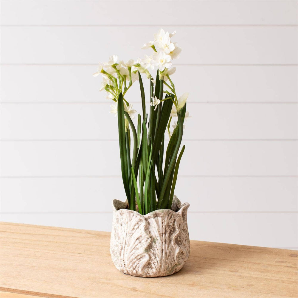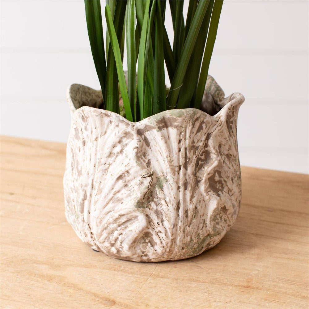 Shop the Distressed White Leaf Design Planter now at MISS DAISY'S Home & Decor and style your plants with effortless charm.