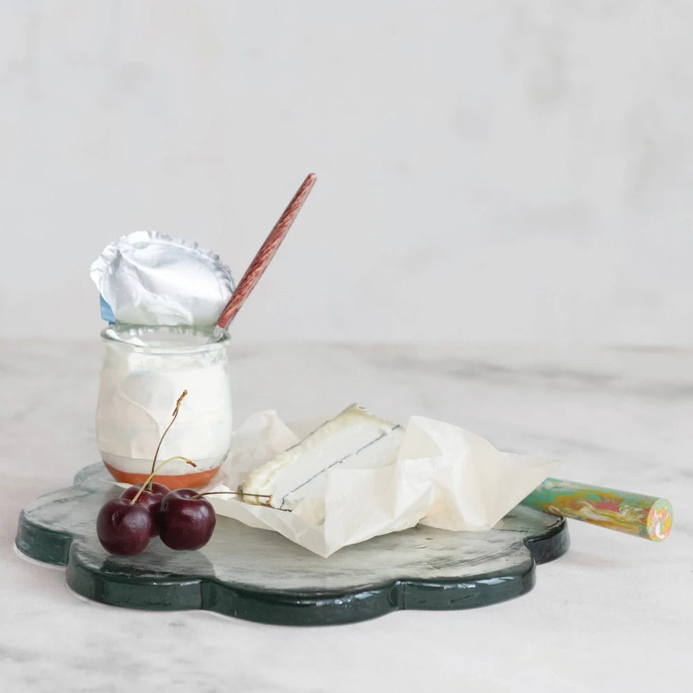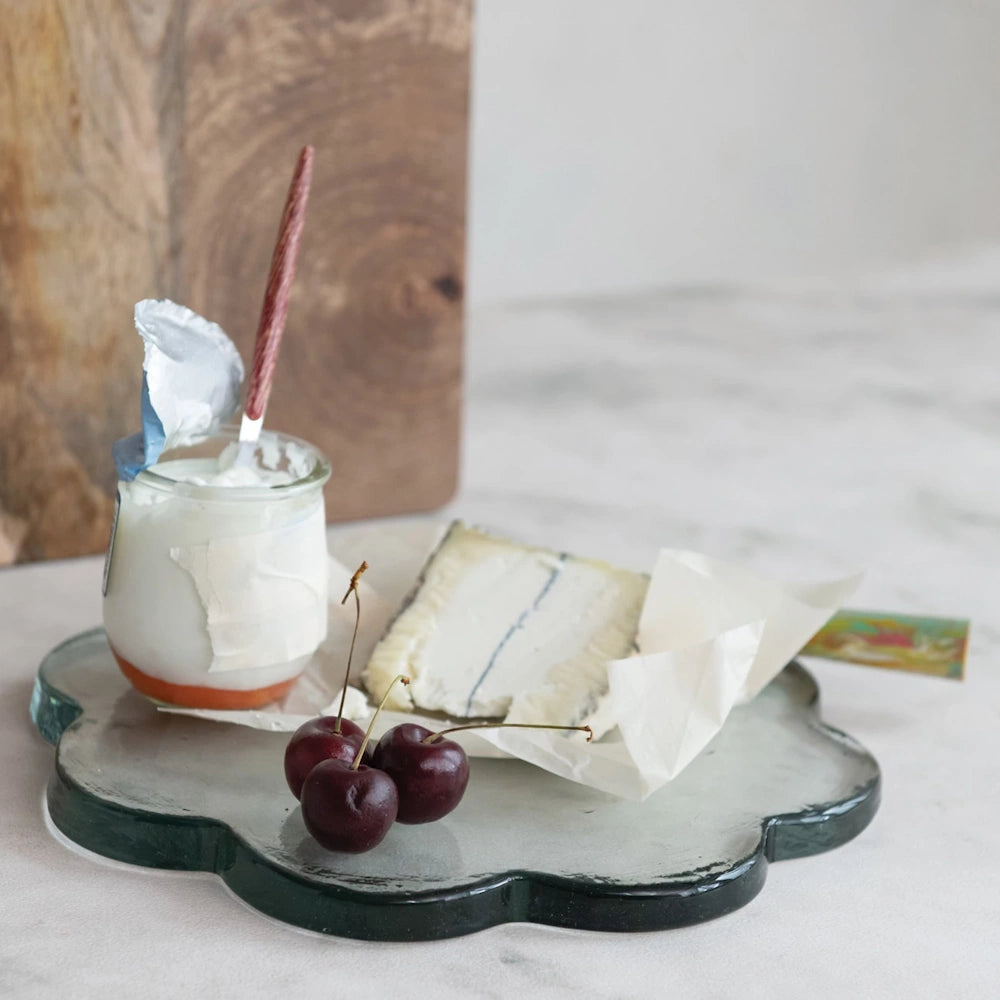 Serve in style with the Pressed Glass Scalloped Cheese & Serving Board, a stunning addition to any tabletop. Crafted with Creative Co-Op’s signature attention to detail, this board combines elegance with functionality for entertaining or everyday use.