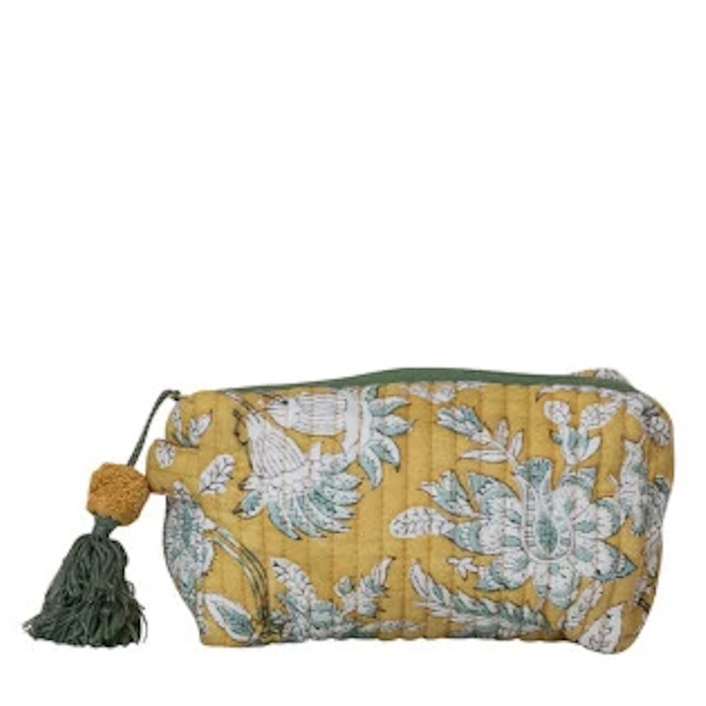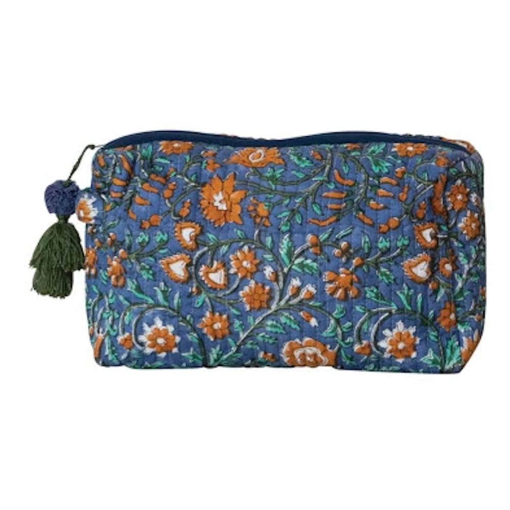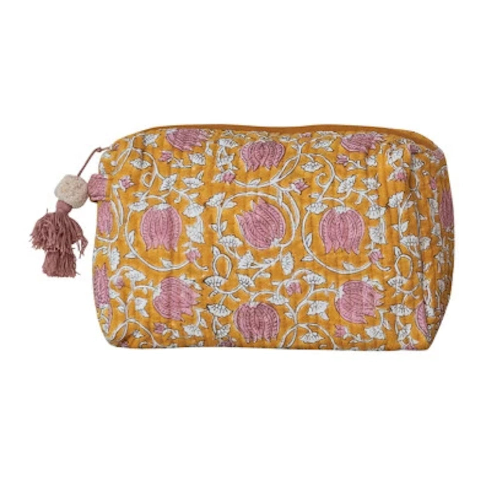 Quilted Cotton Voile Zip Pouch with Floral Pattern
