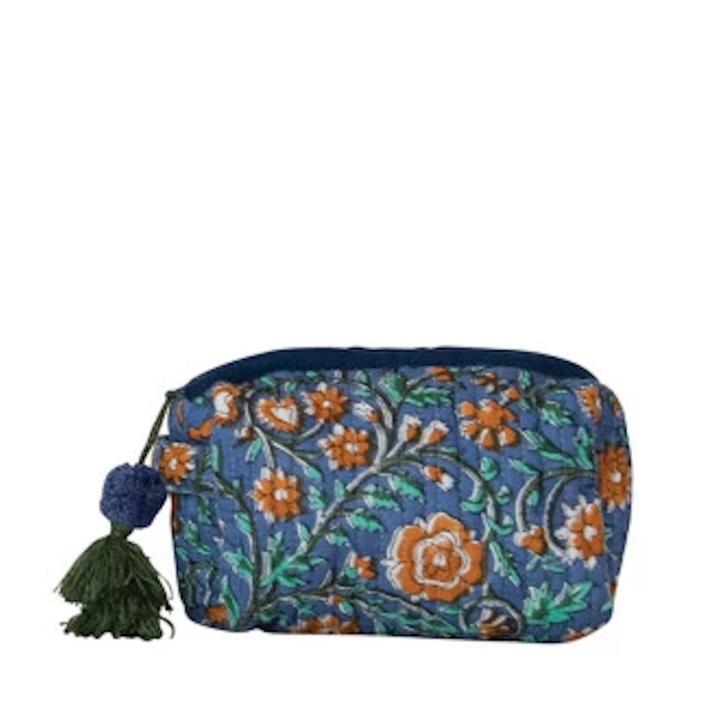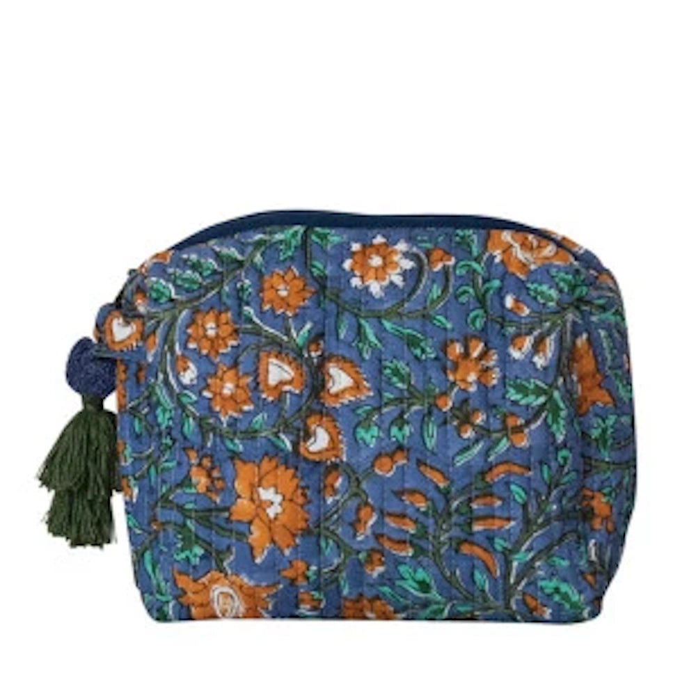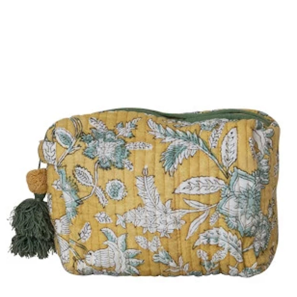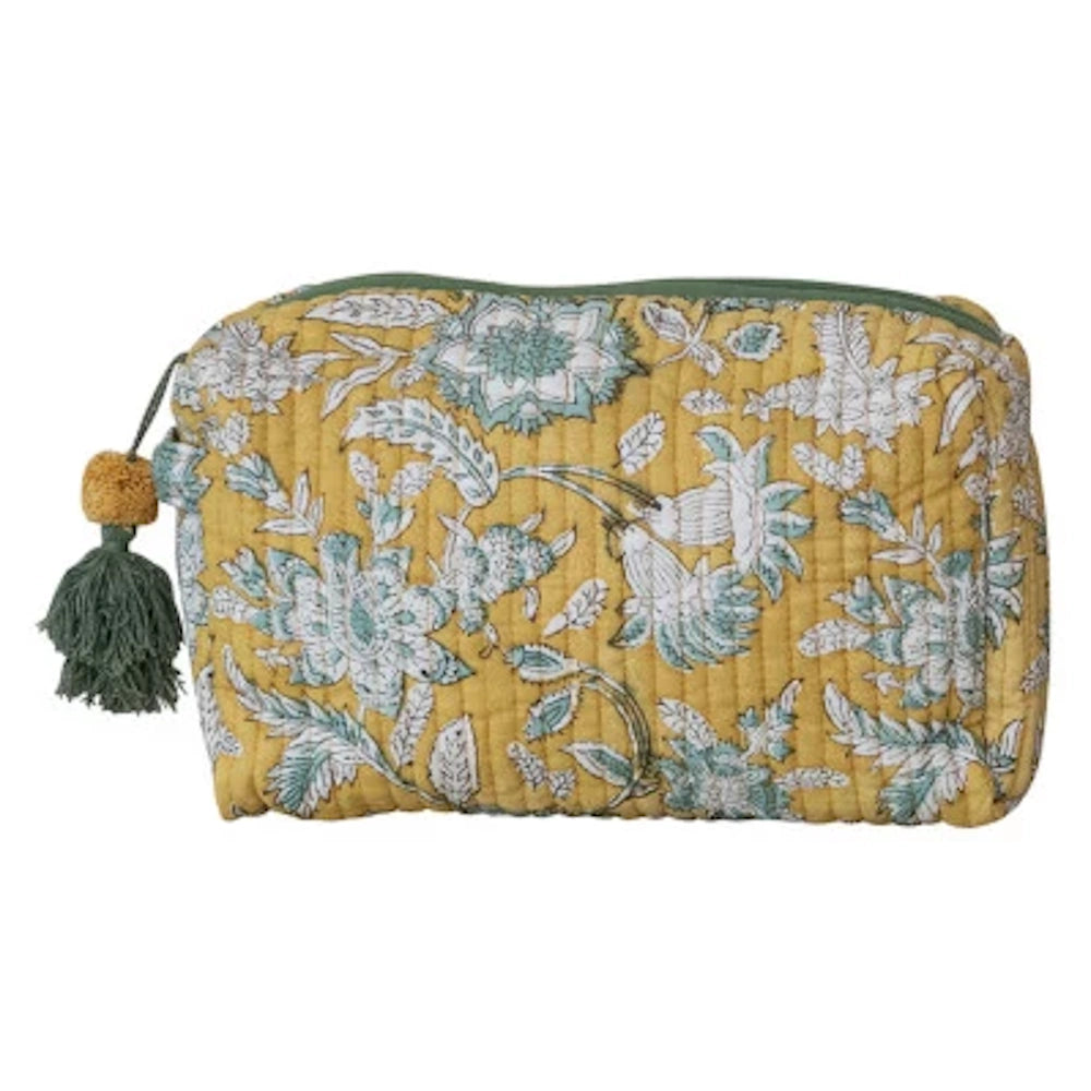 Quilted Cotton Voile Zip Pouch with Floral Pattern