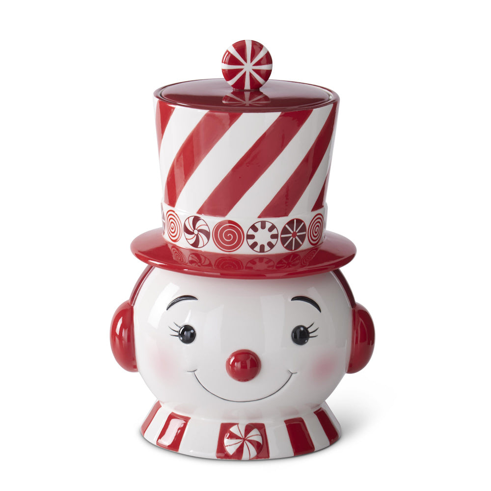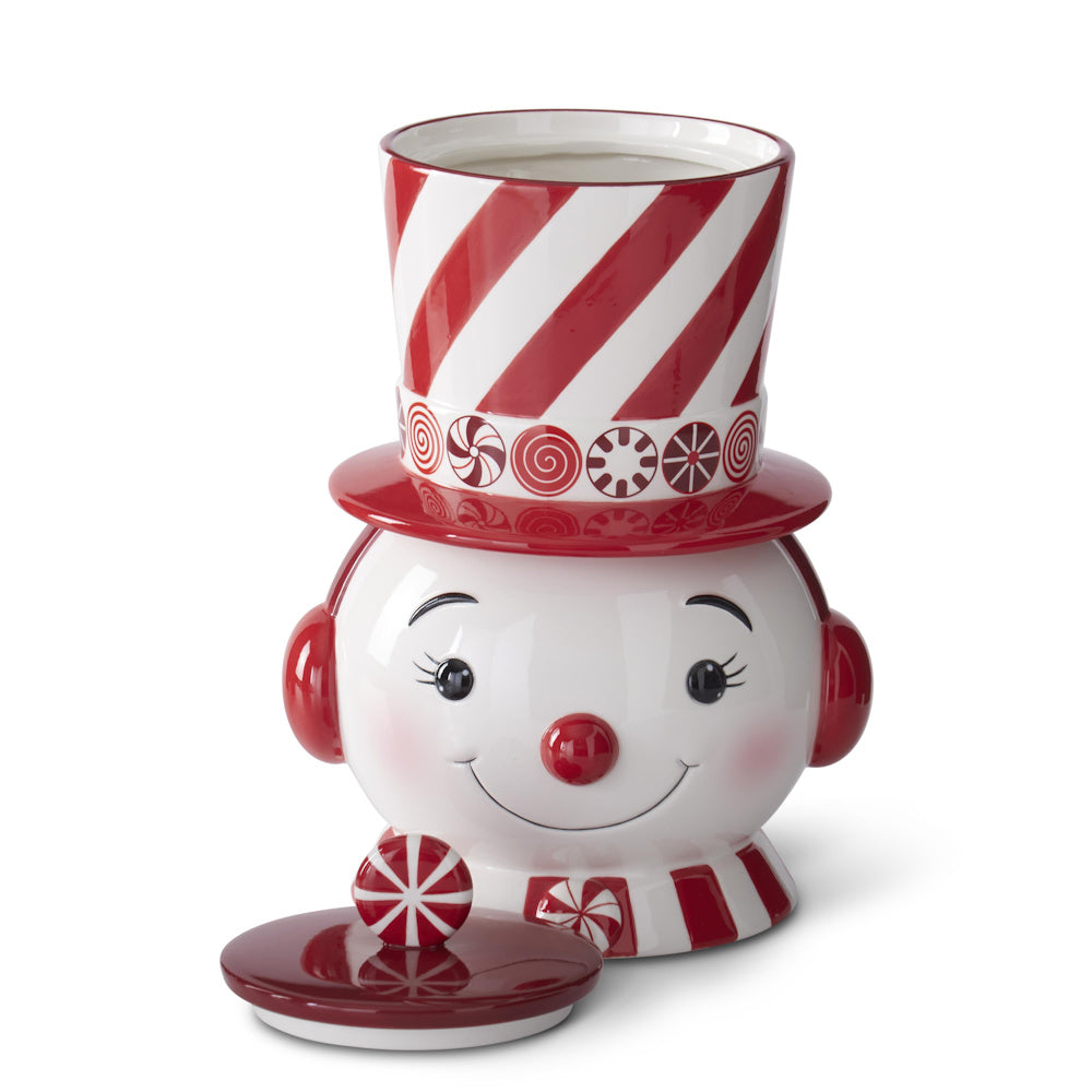 Red & White Dolomite Snowman Cookie Jar