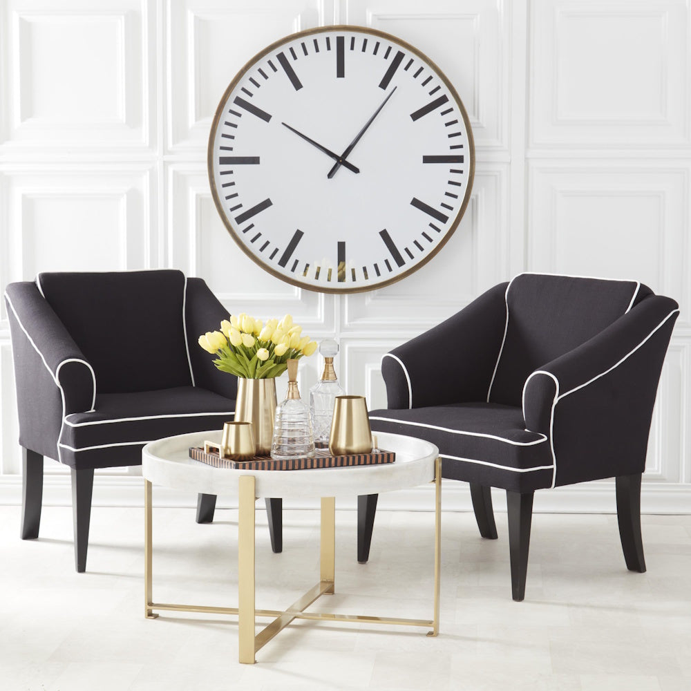Elevate your living space with the luxurious Round Gold Metal & White Marble Coffee Table. Inspired by the sophisticated, timeless style of K&K Interiors, this statement piece blends sleek gold metal with a pristine white marble top for a look that feels modern, elegant, and effortlessly curated.