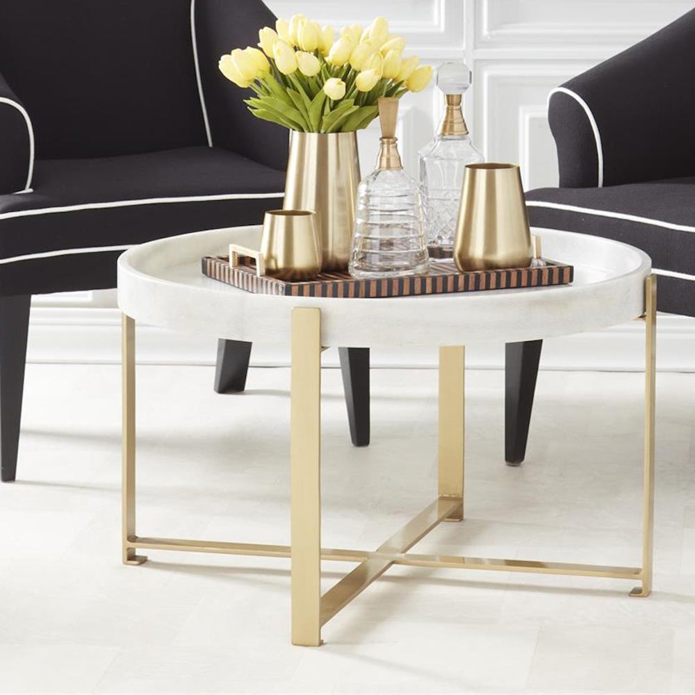 Round Gold Metal & White Marble Coffee Table