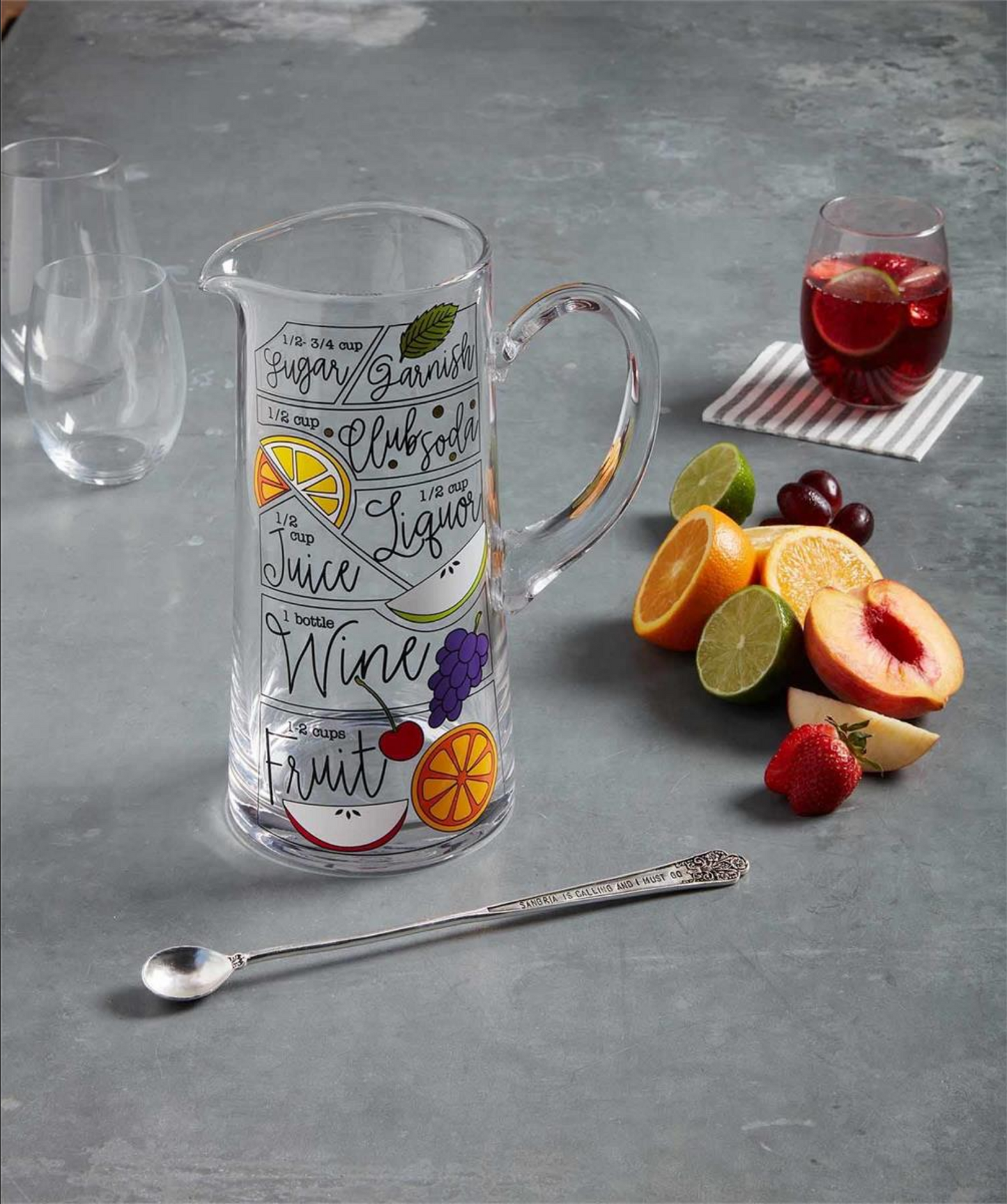 2-piece set. Glass pitcher with sangria recipe exterior arrives with silverplate spoon.