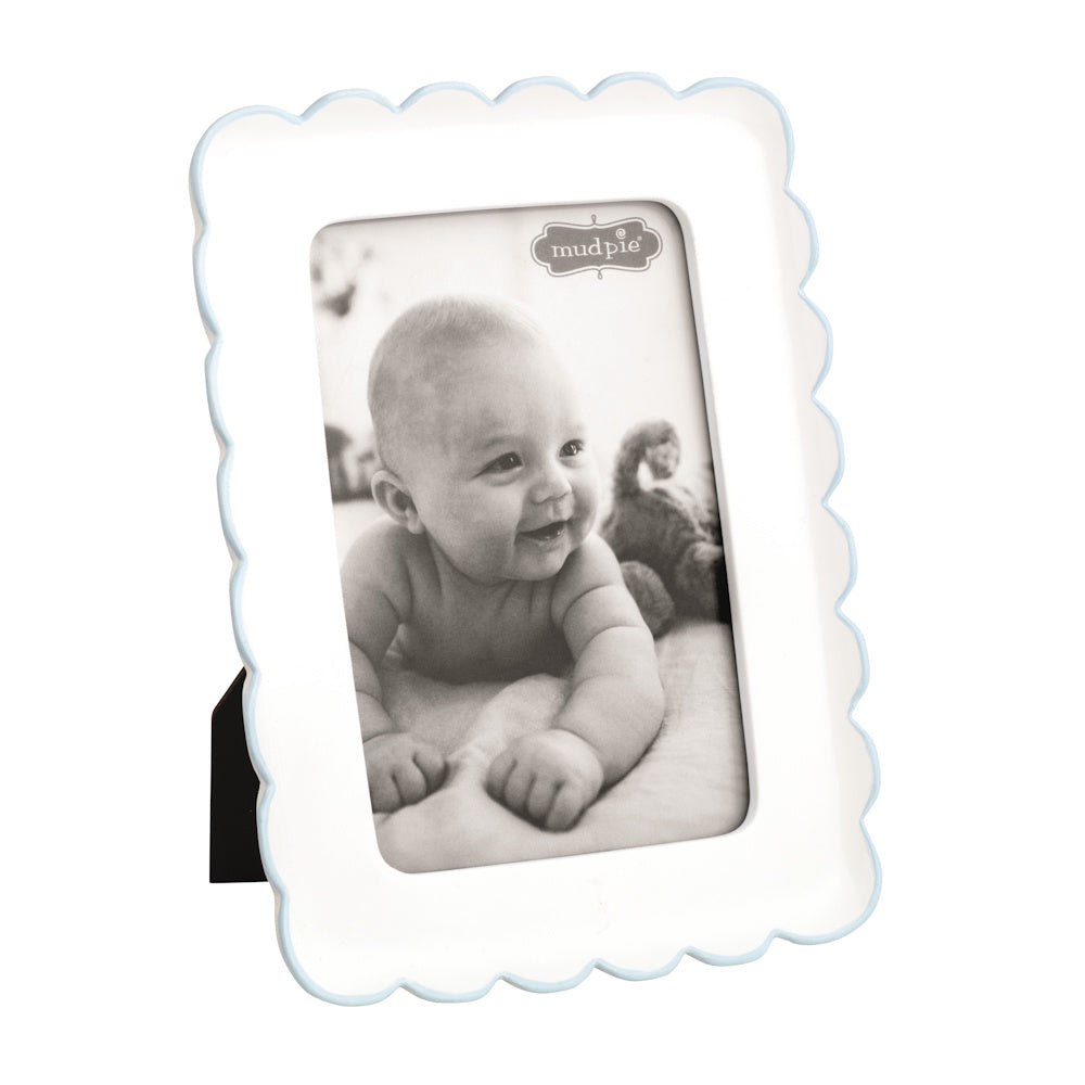 Resin frame features hand-painted scallop edge and holds 4" x 6" photo.
