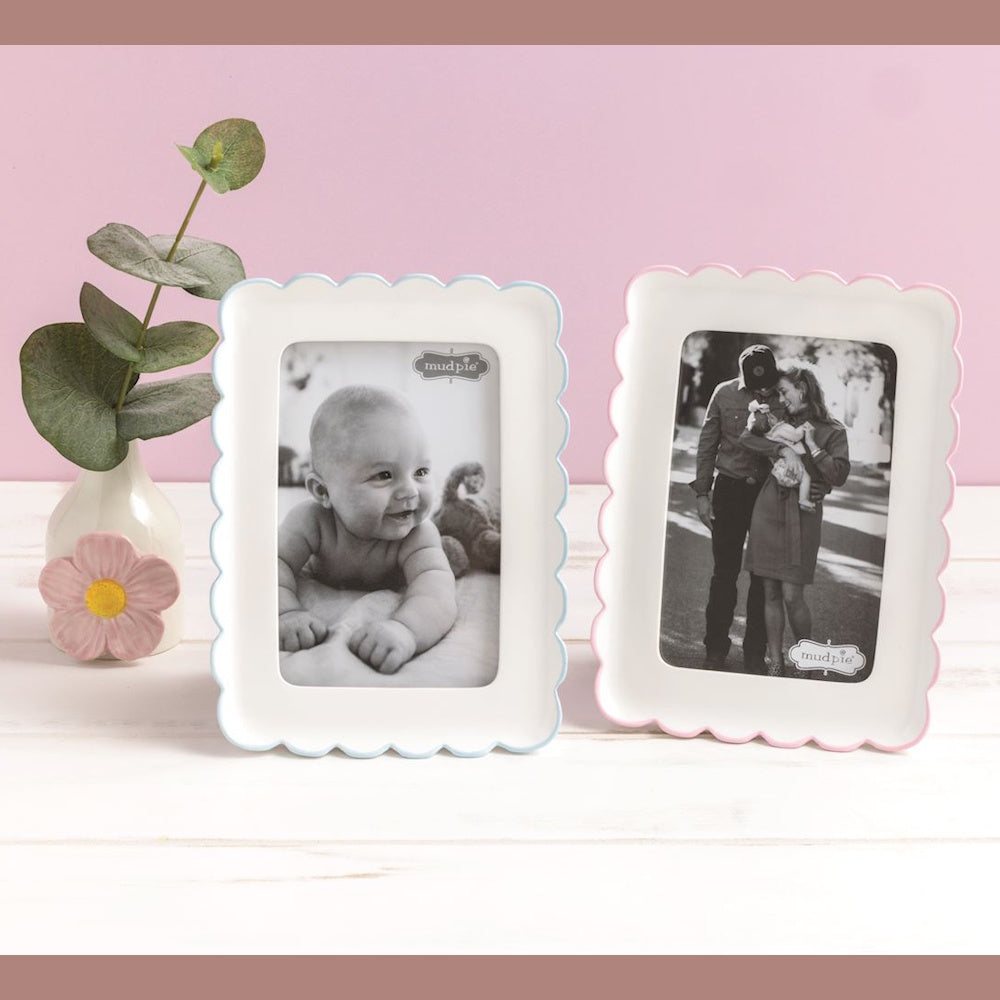Ideal for housewarmings, baby showers, weddings, or thoughtful everyday gifting, these scalloped resin frames blend functionality with boutique-style elegance. Whether styled alone or layered with other décor, they make every photo feel special.