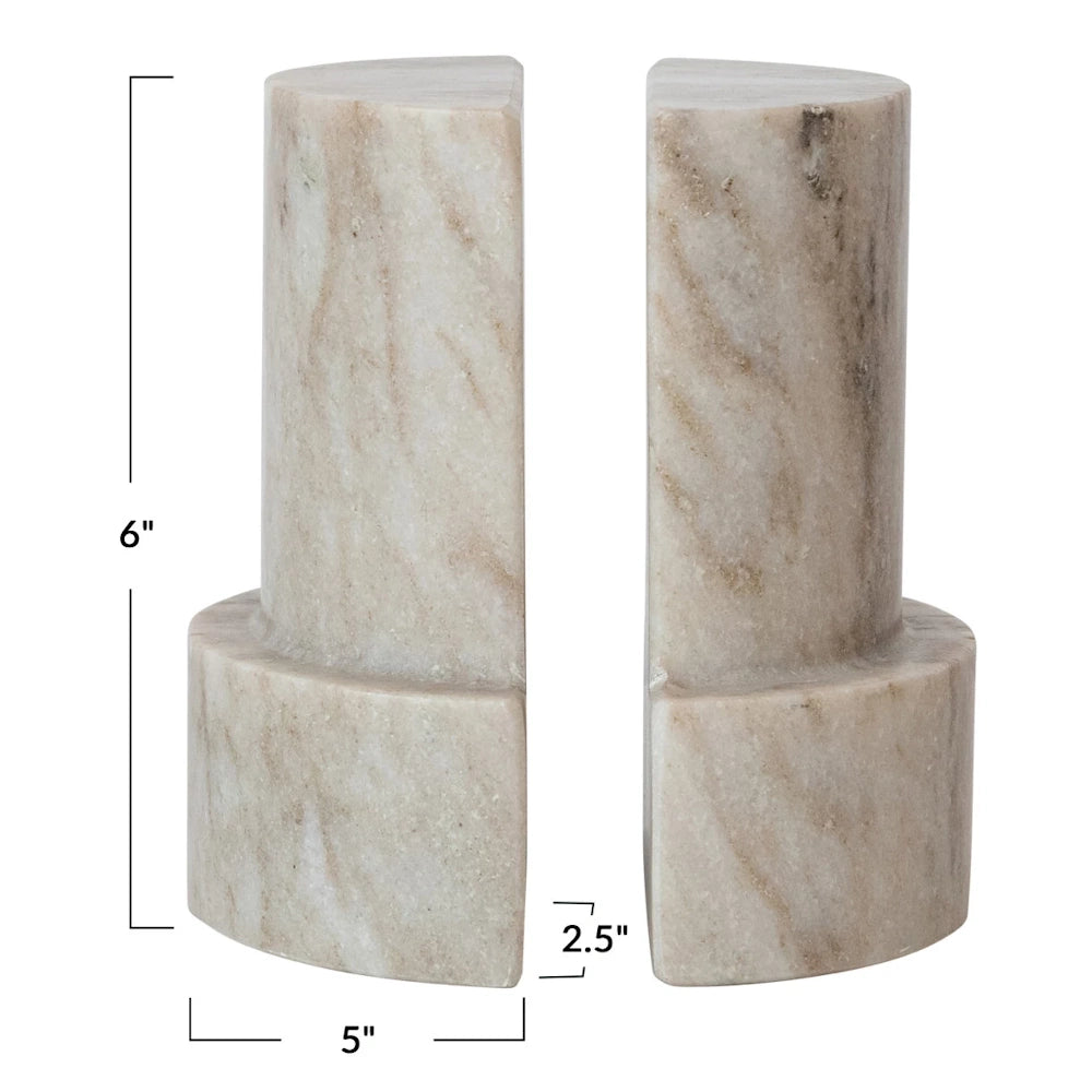 Bring timeless elegance and practical organization to your shelves with this set of 2 beige marble column bookends by Bloomingville. Perfectly crafted from high-quality marble, each piece combines sturdy functionality with sophisticated style, keeping your books neatly in place while adding a chic decorative touch to any room. Sold Individually.