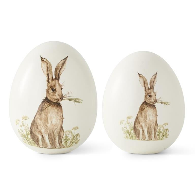 This small white ceramic egg features an elegant vintage bunny detail, making it a refined accent for any tabletop. Its subtle design adds a touch of classic charm, perfect for elevating seasonal displays or enhancing everyday décor with understated sophistication.