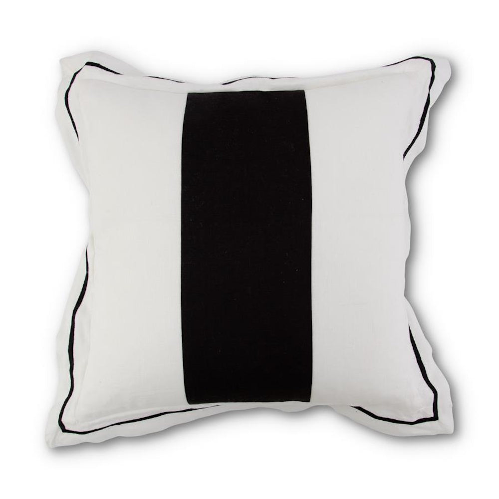Square White Linen Pillow with Black Stripe